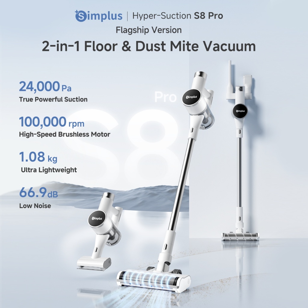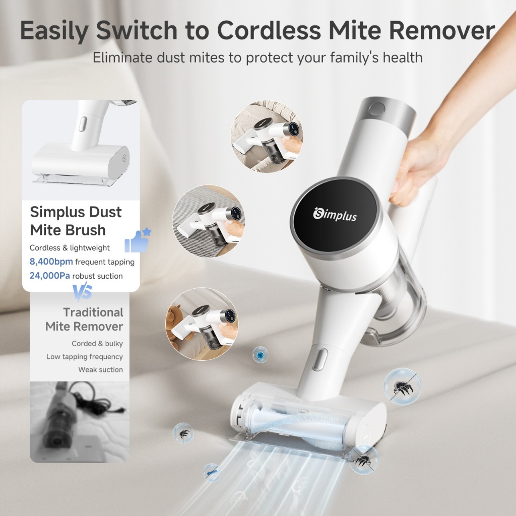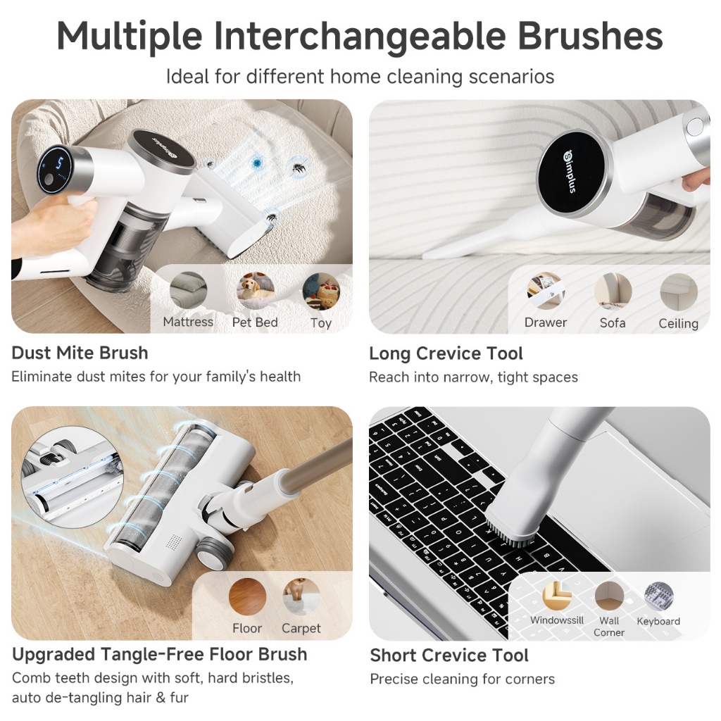 Simplus Cordless Vacuum Cleaner 27000Pa Strong Suction 6 Modes For Floor, Anti-Mite and Narrow areas