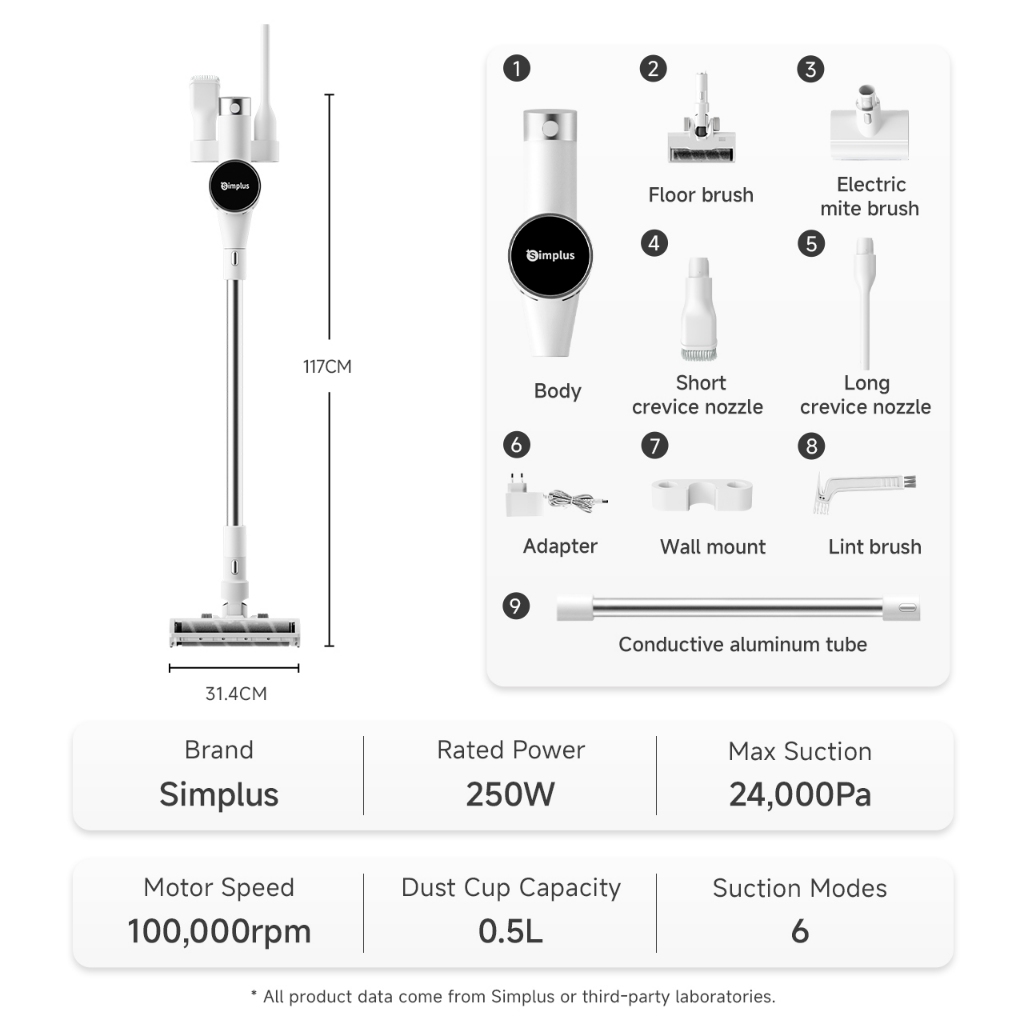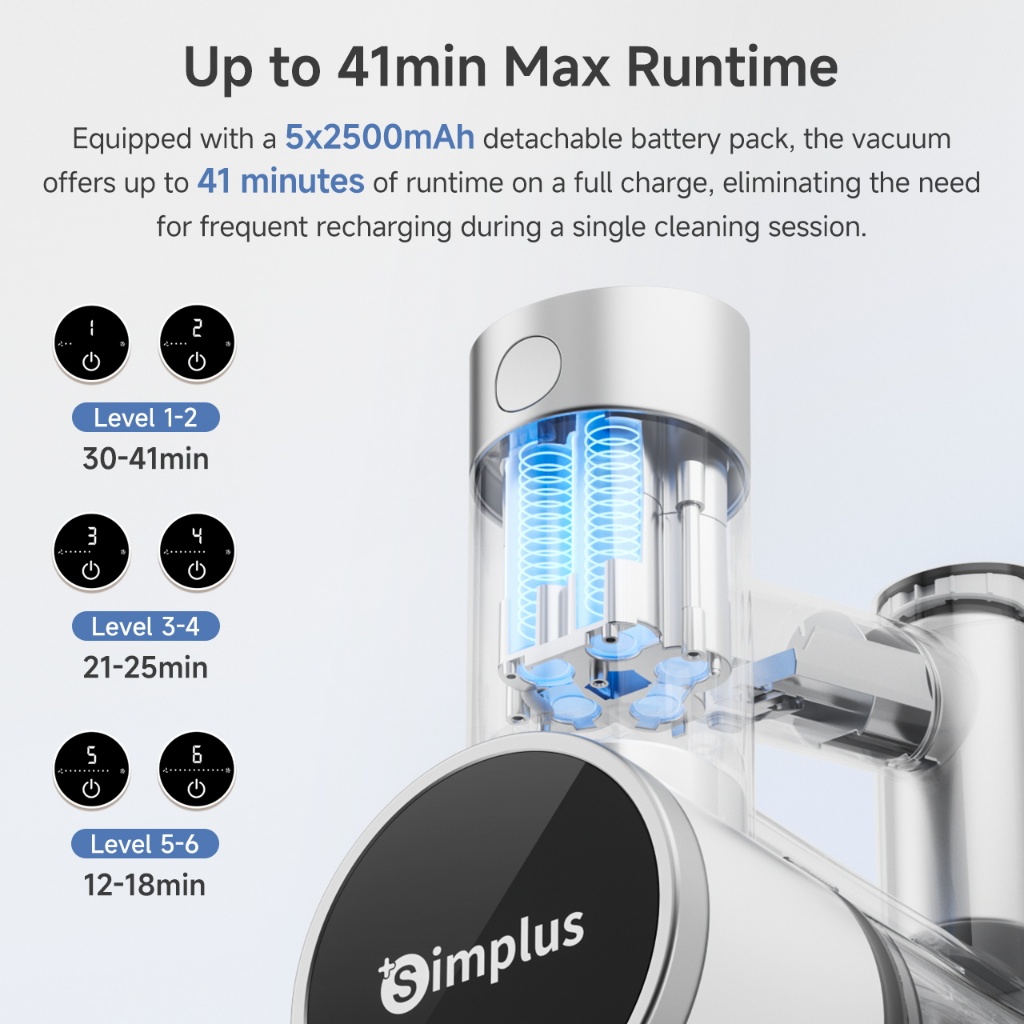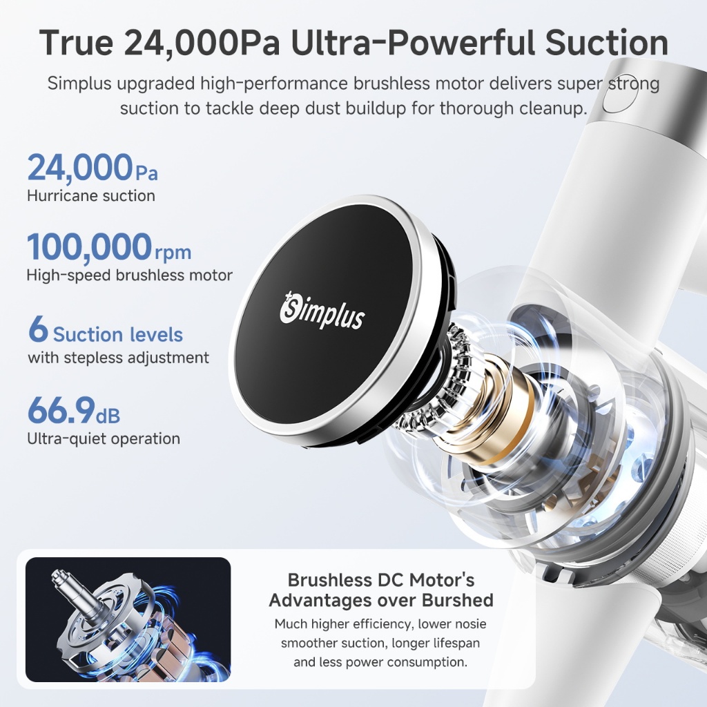 Simplus Cordless Vacuum Cleaner 27000Pa Strong Suction 6 Modes For Floor, Anti-Mite and Narrow areas