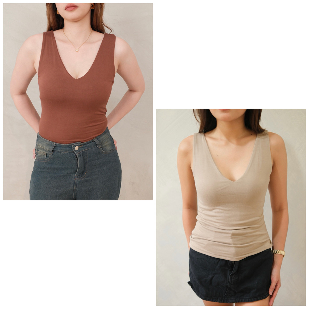 CARA TOP Premium Cotton spandex Vneck | Twelve Twenty Womenswear Comfort Minimalist Sleeveless
