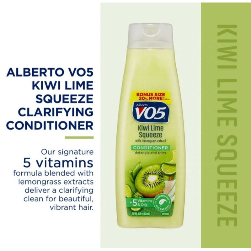 Alberto Vo5 Shampoo or Conditioner Clarifying Kiwi Lime Squeeze 443mL