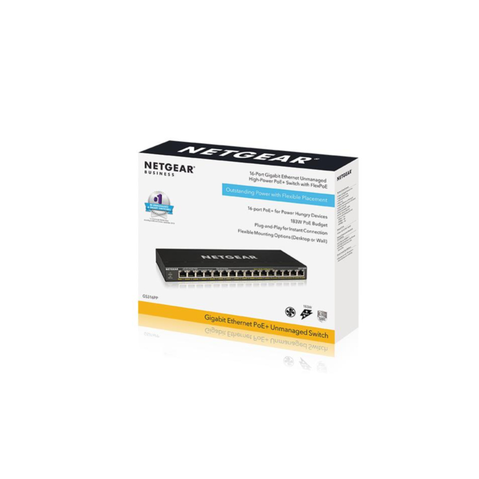 NETGEAR 16-Port Gigabit Ethernet Unmanaged PoE+ Switch with FlexPoE (183W) (GS316PP-100EUS)