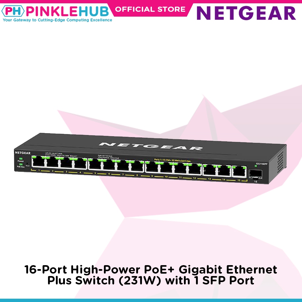 NETGEAR 16-Port High-Power PoE+ Gigabit Ethernet Plus Switch (231W) with 1 SFP Port (GS316EPP-100PES