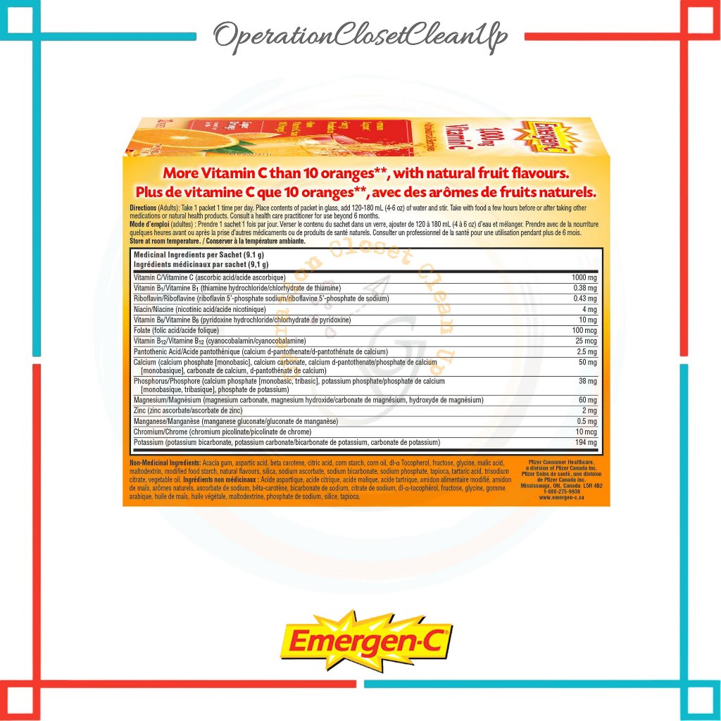 🇨🇦 Emergen-C® Super Orange 1000mg Vitamin C / Electrolytes / B Vitamins Mineral Supplement (02.2025)