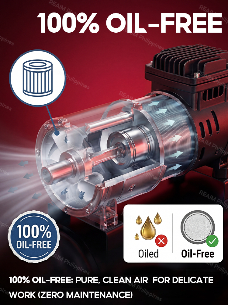 REAIM Air Compressor Portable Heavy Duty Oil-free Silent 1100W/2200W