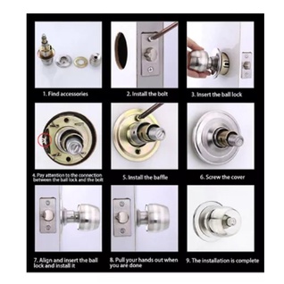 Stainless Steel Door Lock 25mm-45mm Bathroom Round Ball Door Knob Set Handle Passage Lock