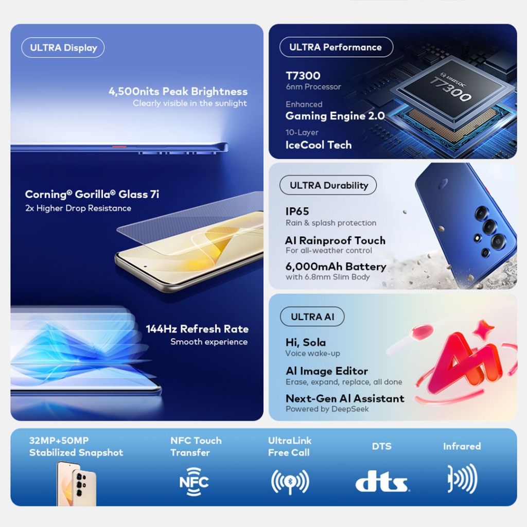 Itel SUPER 26 Ultra 16GB(8+8)+256GB | T7300 6nm Processor | 6000mAh 6.78" 144Hz 3D-Curved 7i