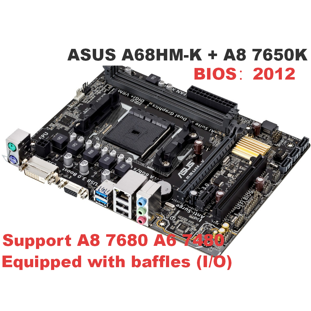 A68HM AMD DDR3 FM2 FM2+ ASUS A68HM-K + A8 7650K motherboard DVI/VGA USB3.0 BIOS chip newly upgraded