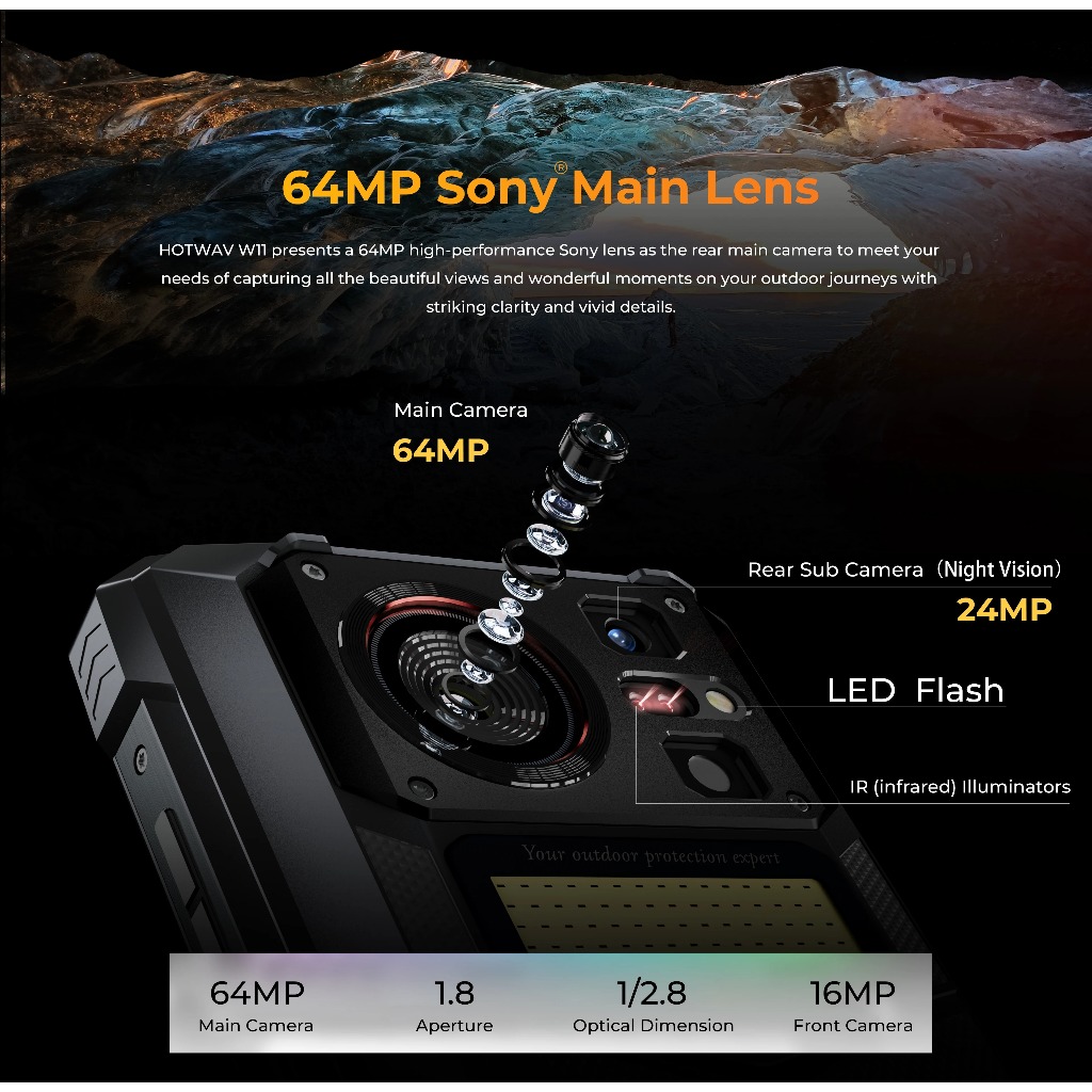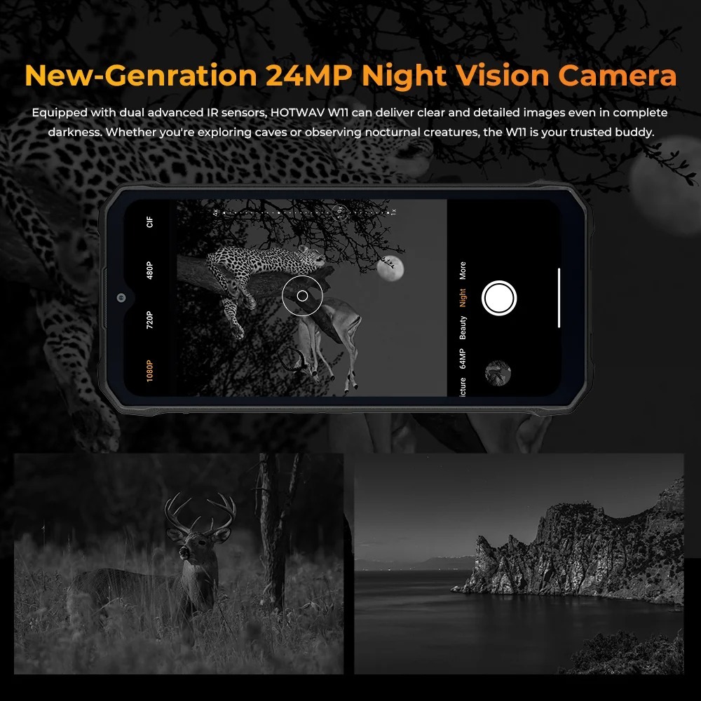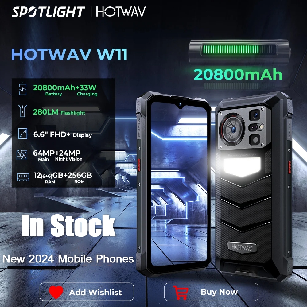 HOTWAV W11 Rugged Phone 20800mAh 280LM Flashlight 6.6'' FHD+ Smartphone 33W 24MP Night Vision