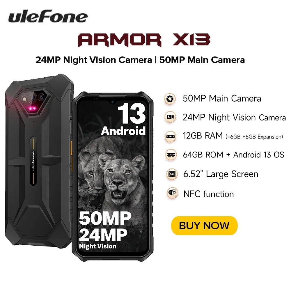Ulefone Power Armor X13 Rugged Smartphone 12GB+64G Android 13 6320mAh 50MP 6.52"NFC 4G GPS Global Version