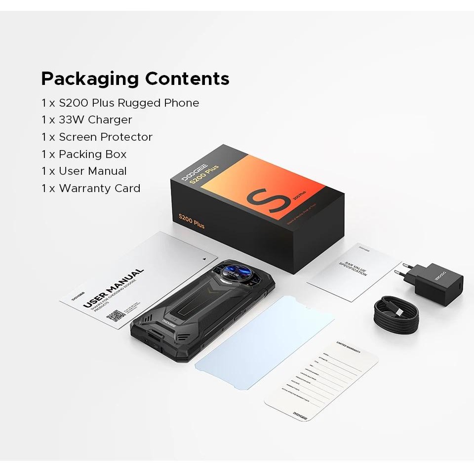 DOOGEE S200 Plus 5G AI Rugged Phone Android 15 Dimensity 7300 1.32" Rear Display 16GB 512GB 11000mAh