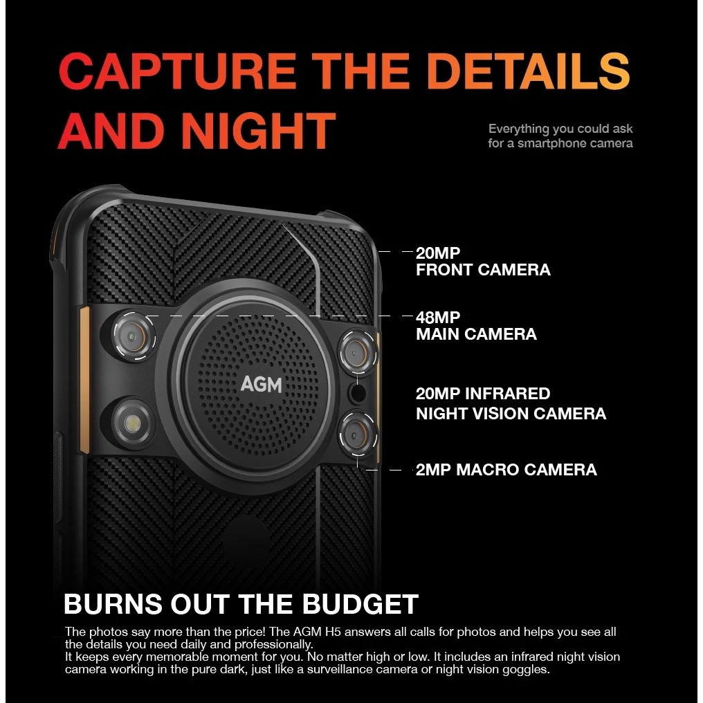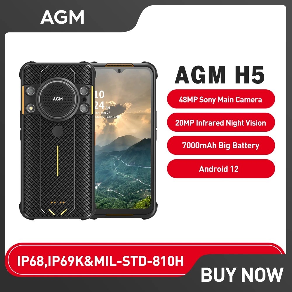 AGM H5 Rugged Phone 6.5 Inch 4+64GB/6+128GB IP68/IP69K Smartphone Android 12 Night Vision Phone 3.5W Loud Speaker NFC Russian Version