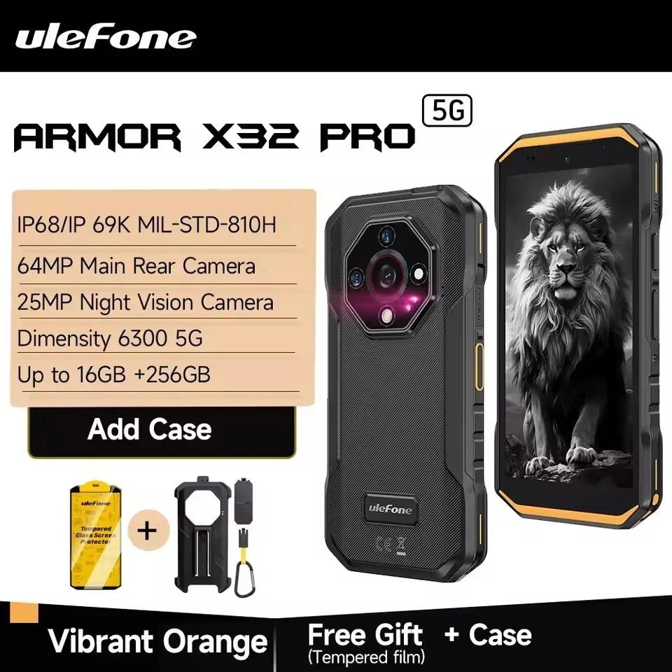 Ulefone Armor X32 Pro 5G Rugged Phone 8GB+256GB 6.65'' Android 15 Night Camera 64MP 6050mAh Dimensity 6300 NFC