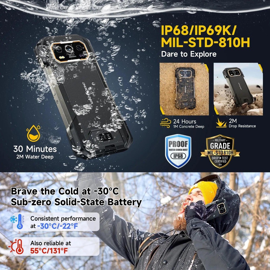 Ulefone Armor 27 4G 10600mAh Rugged Phone 24GB+256GB Android 14 Smartphone 6.78"FHD 120Hz Night Vision Global