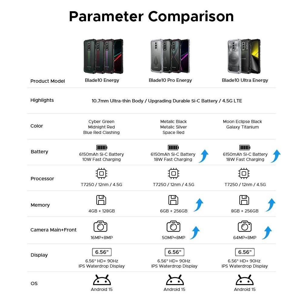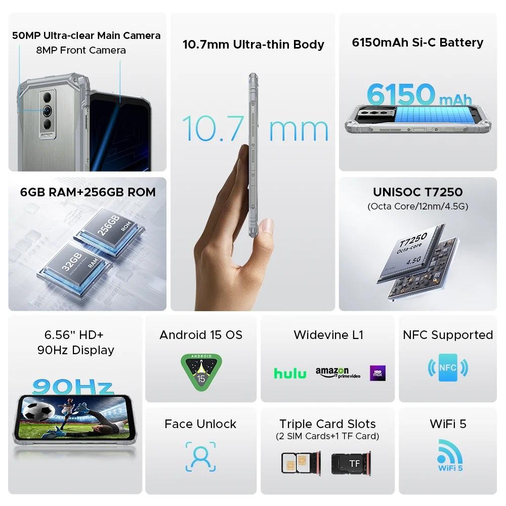 DOOGEE Blade10 Pro Energy Rugged Smartphone Gemini AI Android 15 Ultra-thin 6.56'' Screen 6150mAh