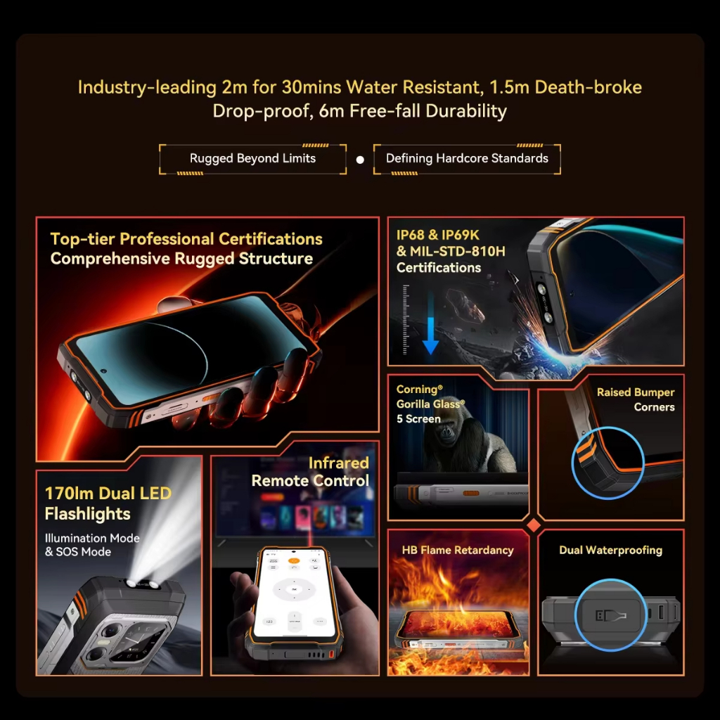 Blackview XPLORE 1 Rugged Smartphone 6.78'' 2.4K Display 5G 6GB+512GB 20000mAh 64MP Android 15 NFC