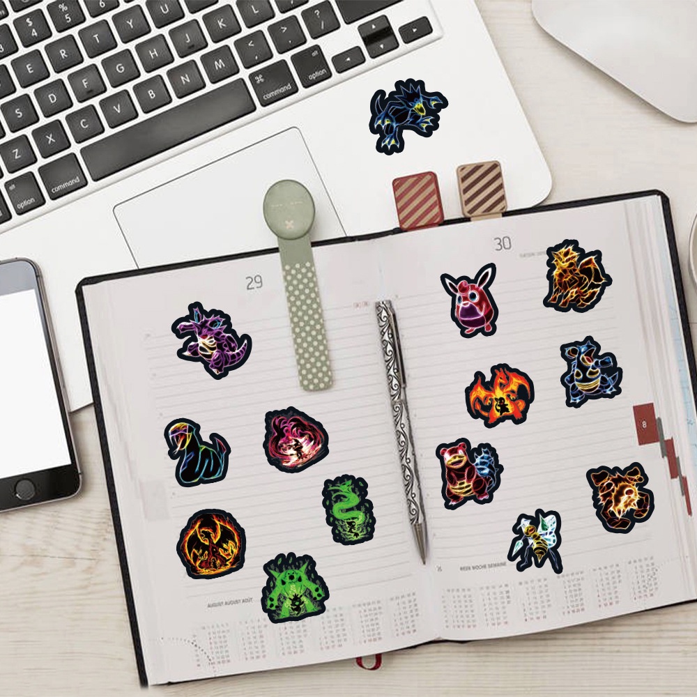 60 pcs Pokemon Cartoon Neon lights Waterproof PVC Stickers