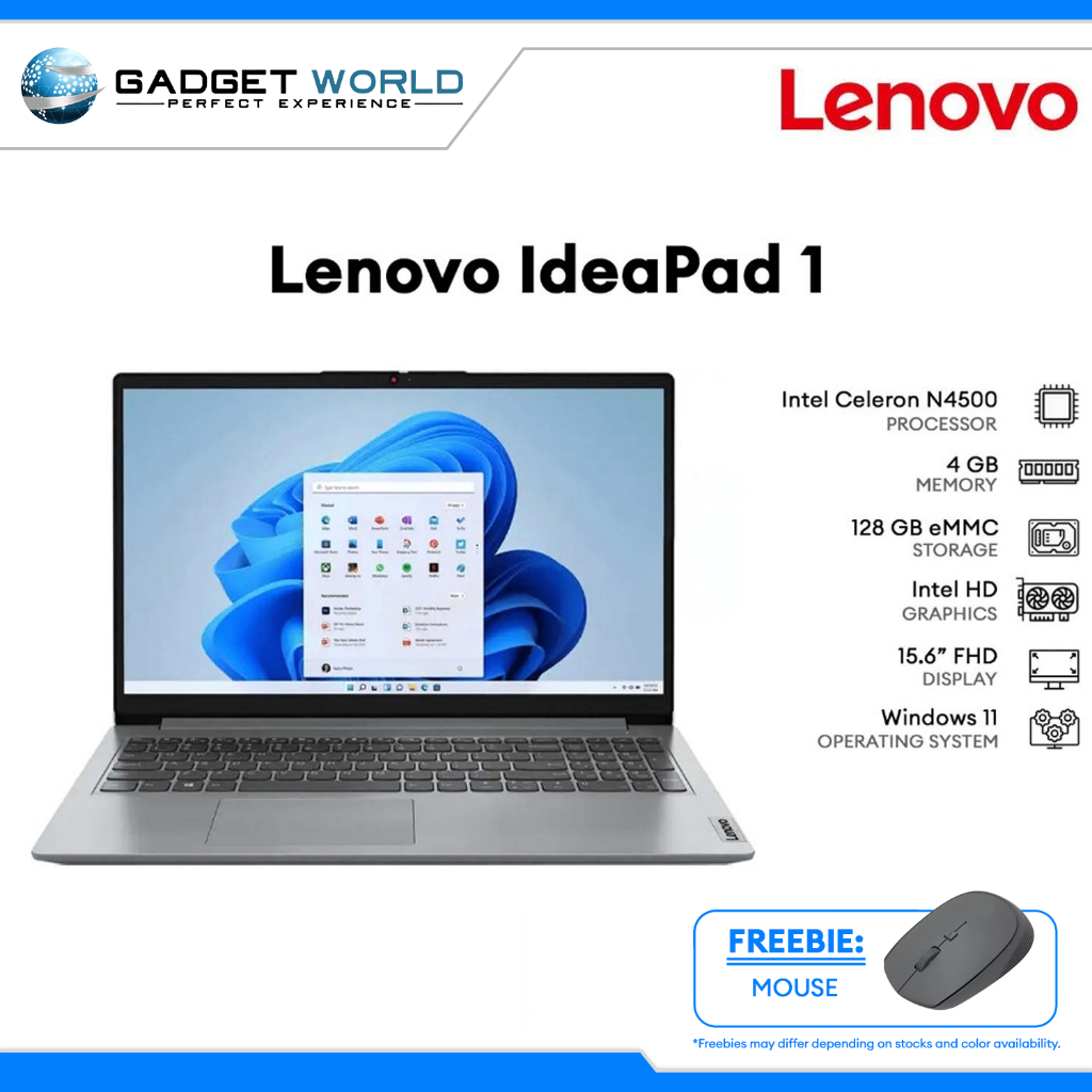 Lenovo Ideapad 1 15.6" HD Celeron N4500 4GB RAM 128GB eMMC Win11 Cloud Grey