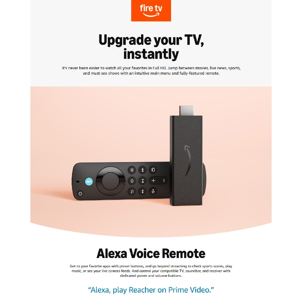 Amazon Fire TV Stick HD Streaming Media Player with Alexa Voice Remote 2024 - Black