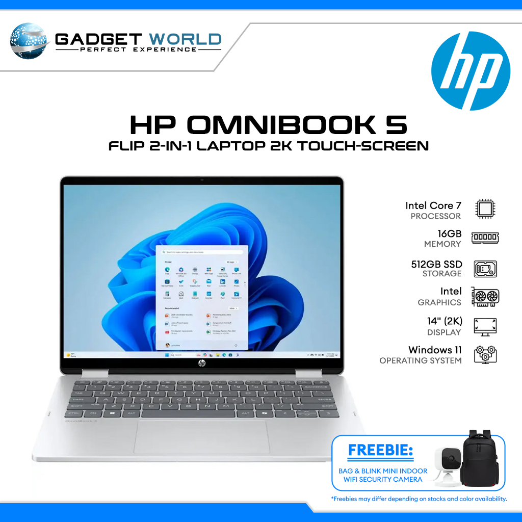 HP OmniBook 5 Flip 2-in-1 Laptop 14" 2K Touch Screen Intel Core 7-150U 16GB/512GB SSD Intel Graphics