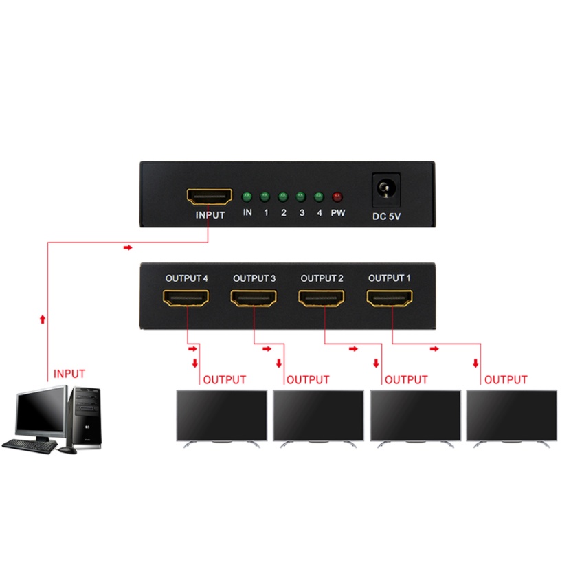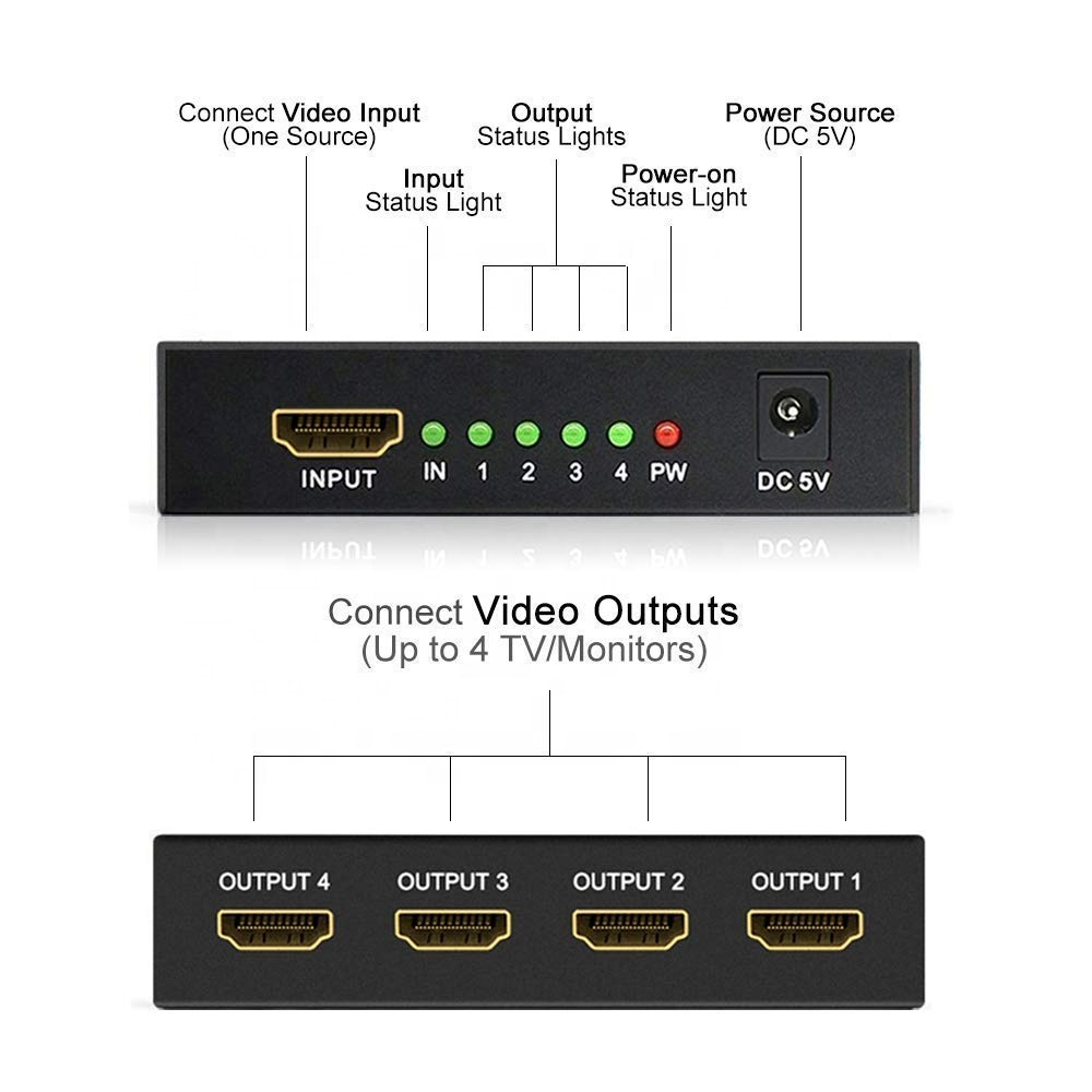 Allan HDMI Splitter 1x4 HDTV 1.4 Ultra High Definition 1 in 4 out 4K / For Dual Monitor / Splitter