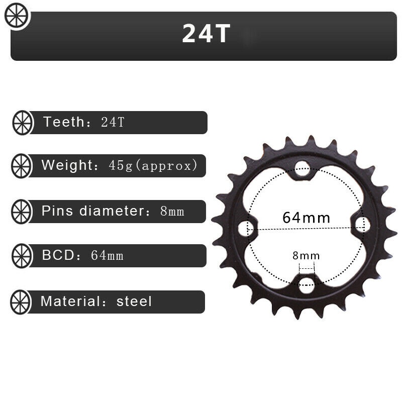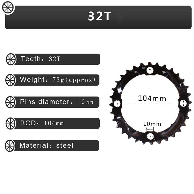 BUCKLOS Chainring 104 BCD 24/32/42T MTB Chainring Steel 64mm Bike Chain Ring Cycling Accessories