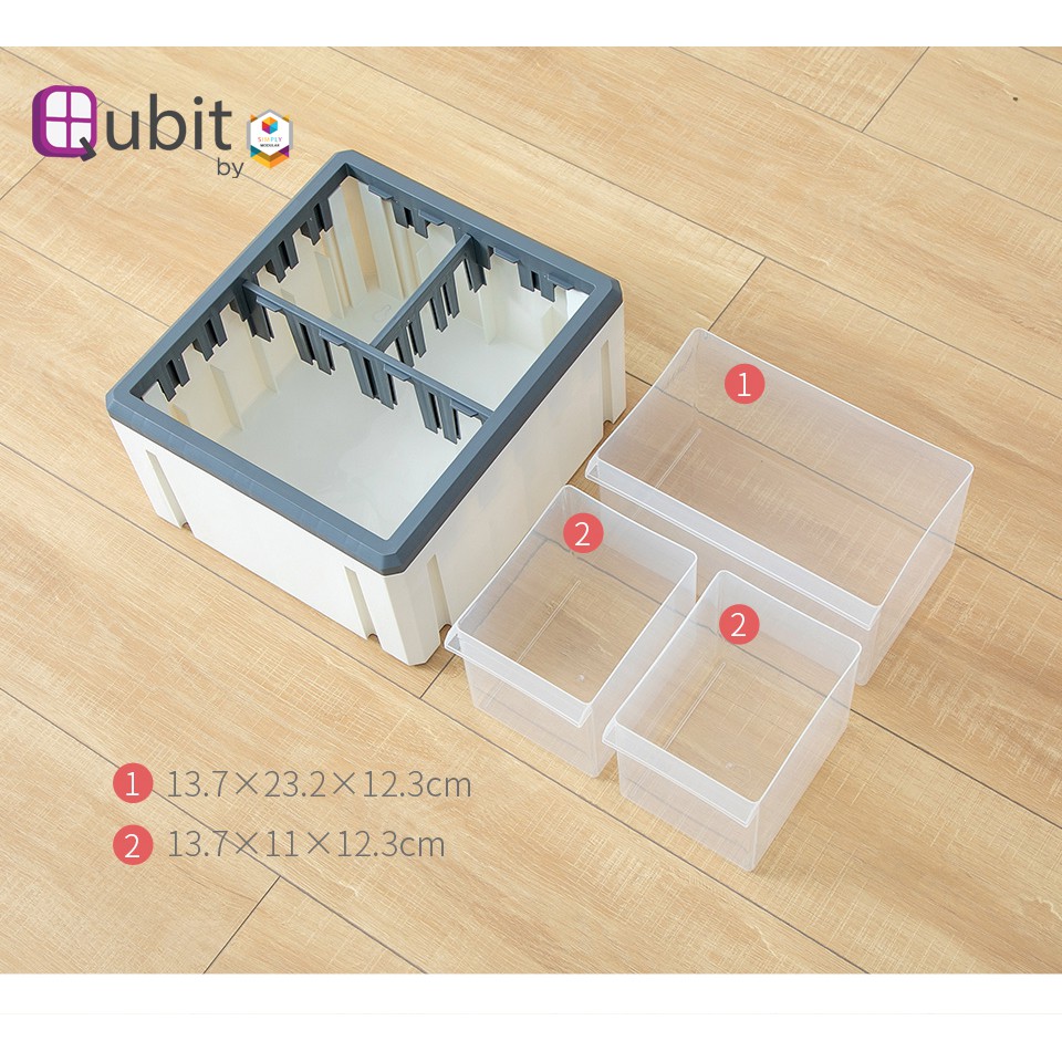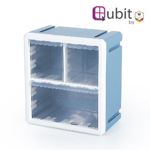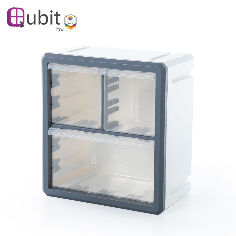 Qubit Tri Cube Mini Desktop Drawer with 3 Transparent Compartments Gray Frame Plus White Body