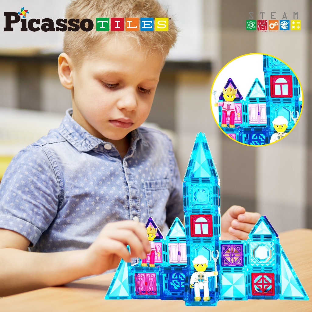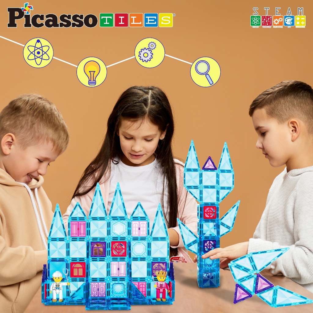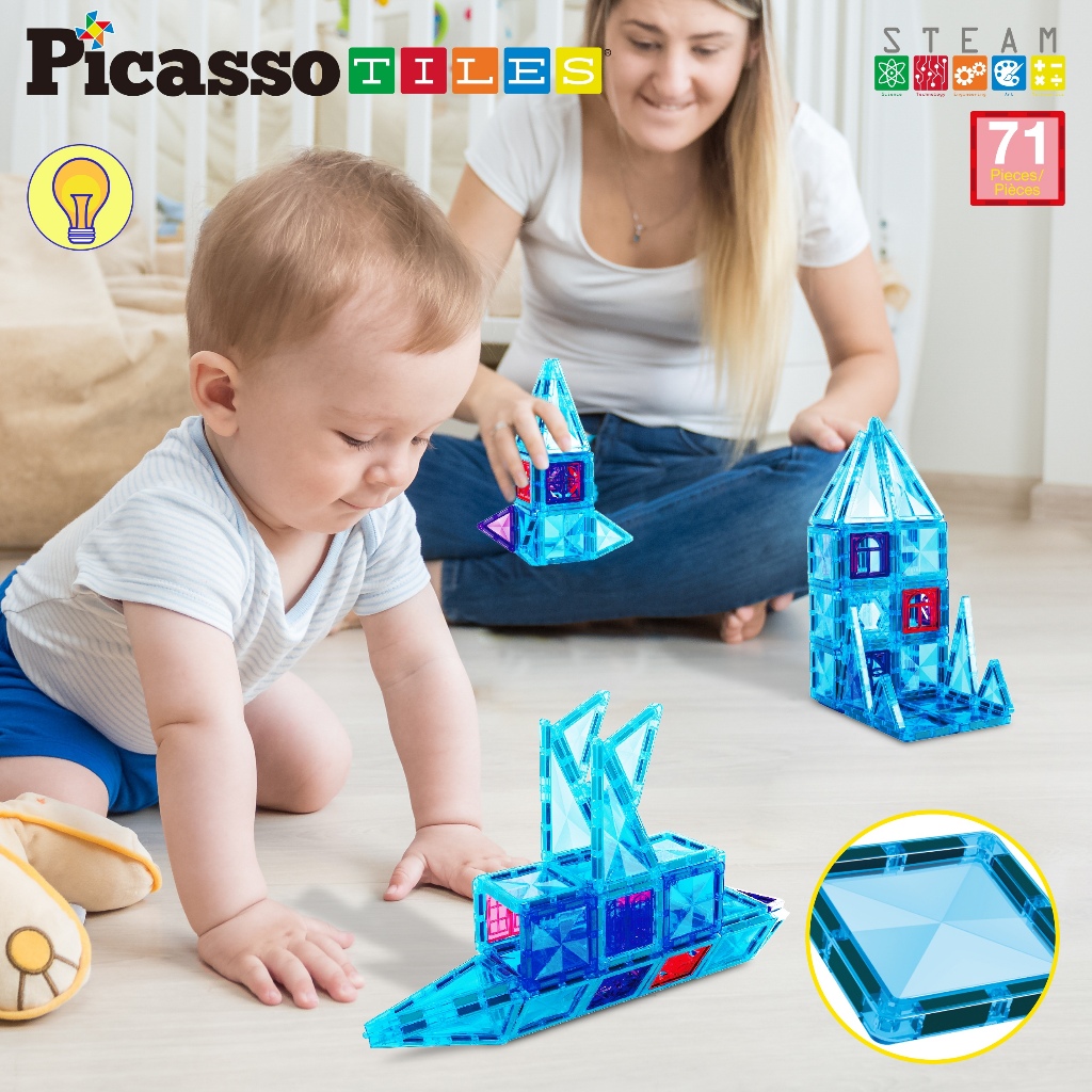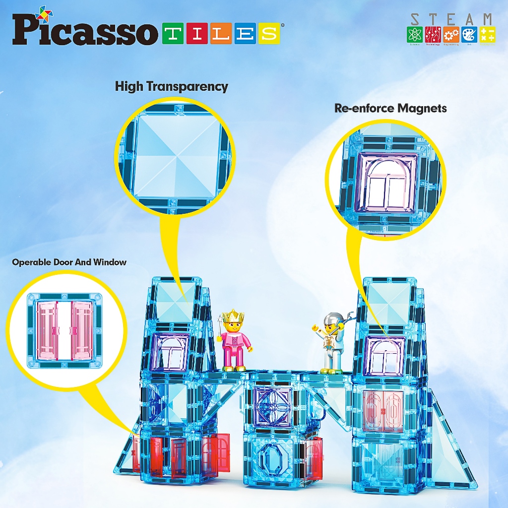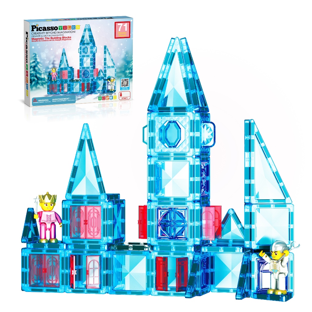 Picasso Tiles 71pc Mini Diamond Series Winter Ice Theme Magnetic Tile Building Blocks Toy Set PTM71