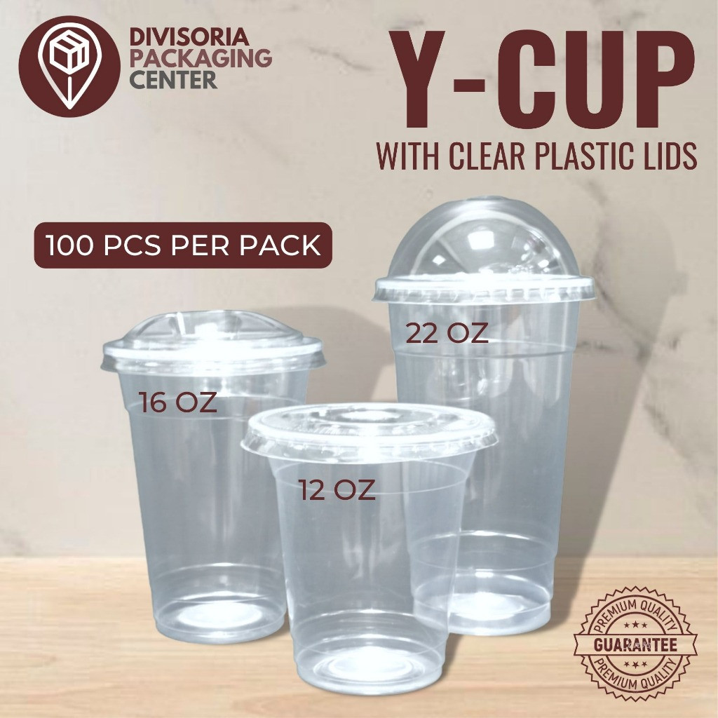 [100pcs] Plastic PP Y Cup with Lid Set ( 12oz / 16oz / 22oz ) for Milk tea / Coffee