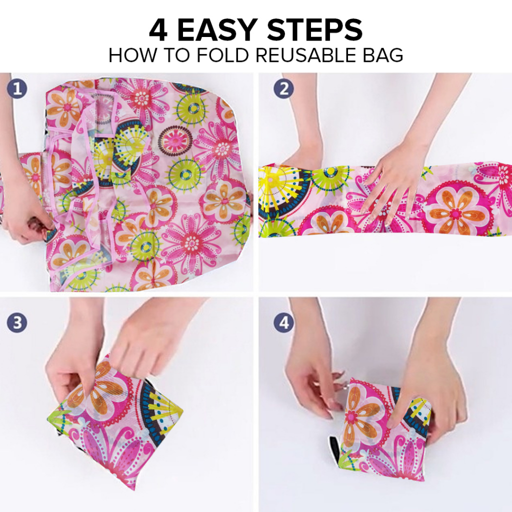 Reusable Eco-Friendly Grocery Foldable Shopping Bag Washable Folding Tote Bag [RANDOM DESIGN] EB-M