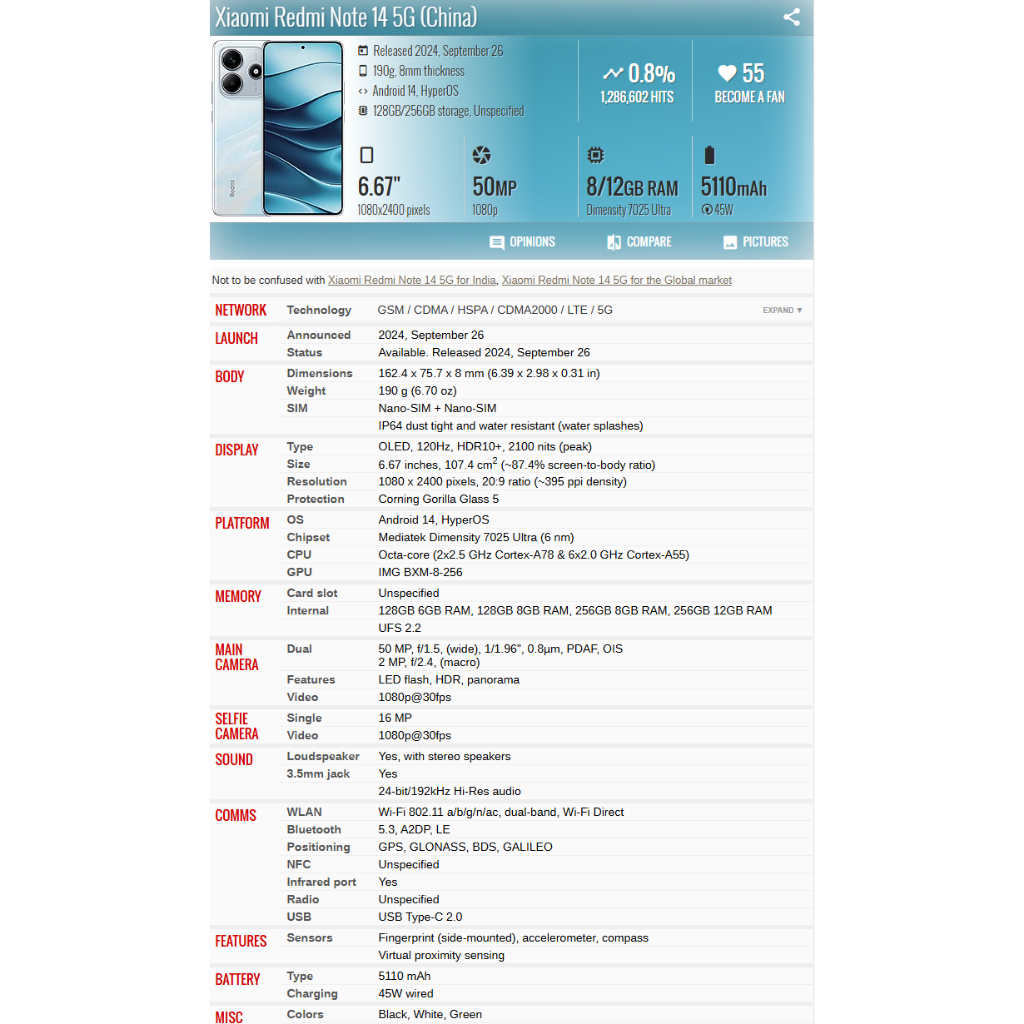 [Free Bluetooth headset] Redmi Note 14 5G/Dimensity 7025 Ultra/5110mAh/Dual Sim Smartphone/Brand New
