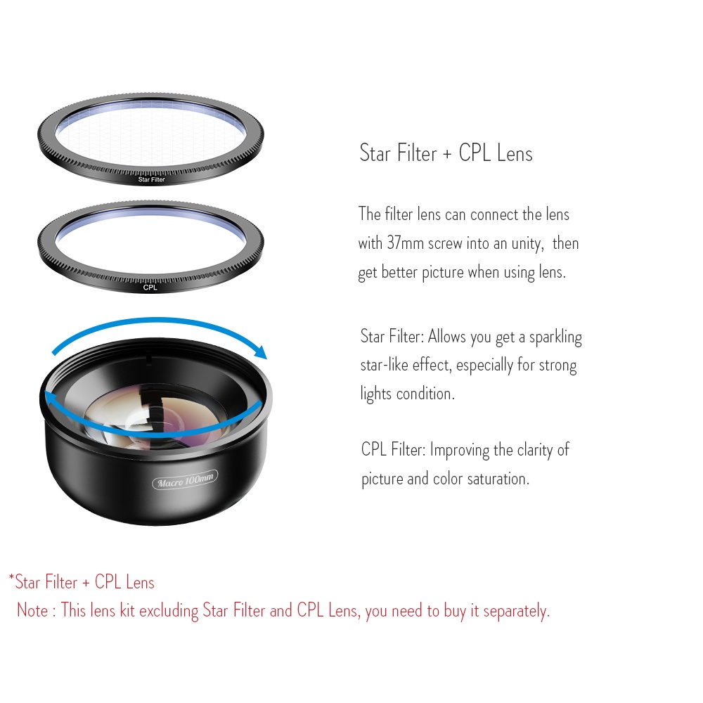 APEXEL 4K HD 100mm macro lens Professional phone camera lens+CPL filter+star for all smartphone