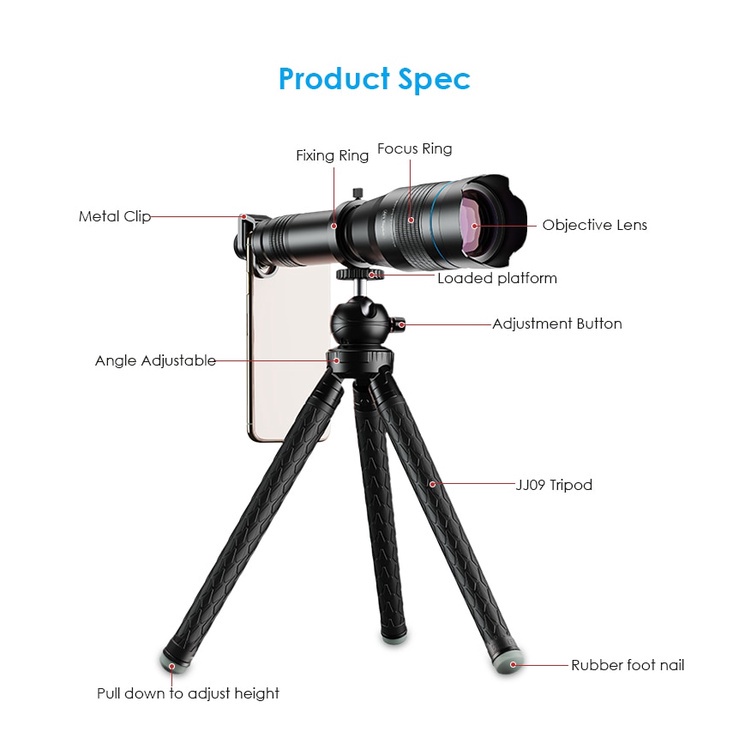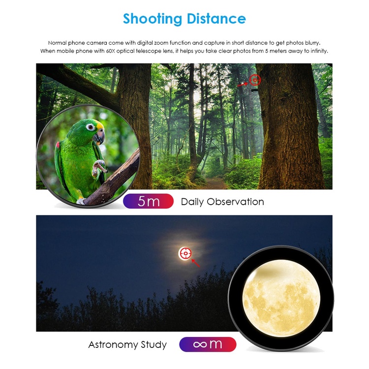 APEXEL 60X Mobile Phone Monocular Telescope Lens astronomical zoom lens extendable tripod for all Smartphones