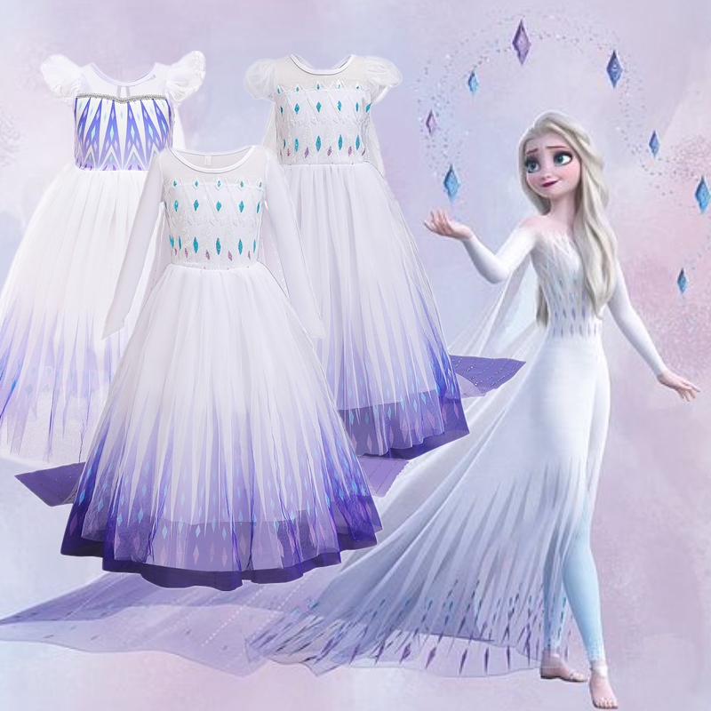 [NNJXD]Summer Snow Queen Girls Dress Anna Elsa 2 Cosplay Costume Kids Halloween Elsa Dress Fancy Children Gowns