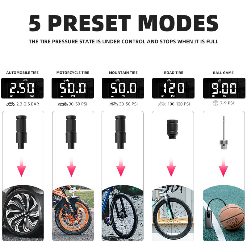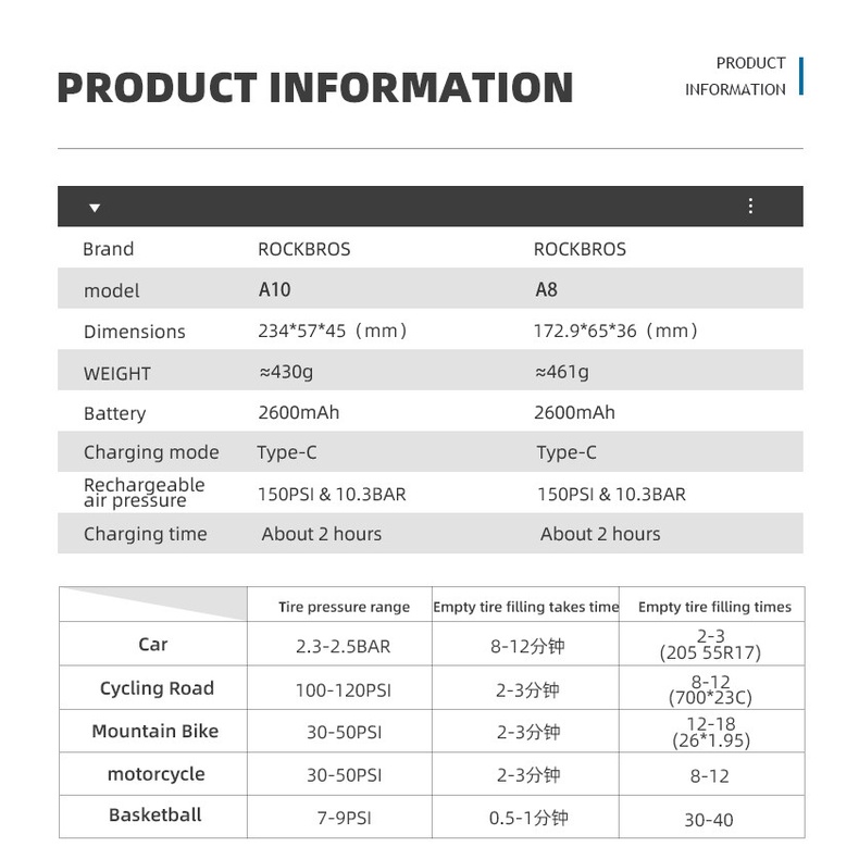 【PH Delivery】ROCKBROS Intelligent Electric Pump Wireless High-Pressure Portable Type-C Rechargeable Bicycle Lighting Car Motorcycle