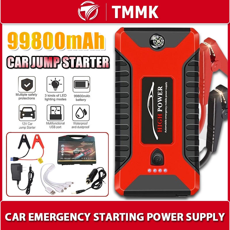 Car Jump Starter 99800mAh Multi-function Emergency Powerbank 12V Rechargeable Battery With Air Pum