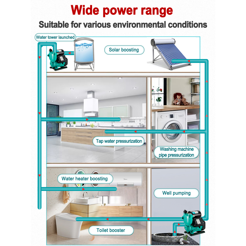 Water Pump Automatic Booster Pump 220V intelligent Hot and Cold Water Self-priming Pump Jet pump