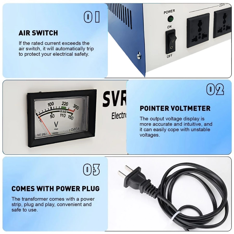 AVR 3000W/220V Automatic Voltage Regulator SVR-3000VA/2000VA/1000VA/500VA Servo Type AVR Time Delay
