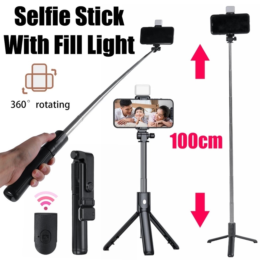 100CM 4 in 1 Selfie Stick With Fill Light Tripod Monopod Wireless Bluetooth Remote Phone Stand Holde