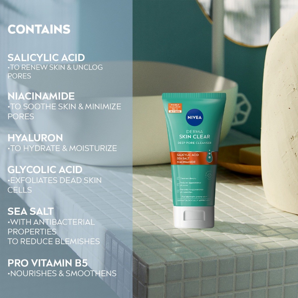 NIVEA Face Derma Skin Clear Gel Anti-Acne Facial Wash with Salicylic Acid & Niacinamide, 150ml