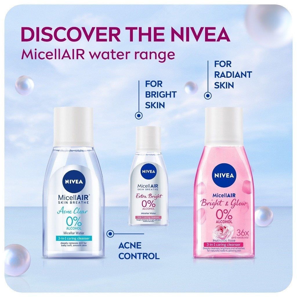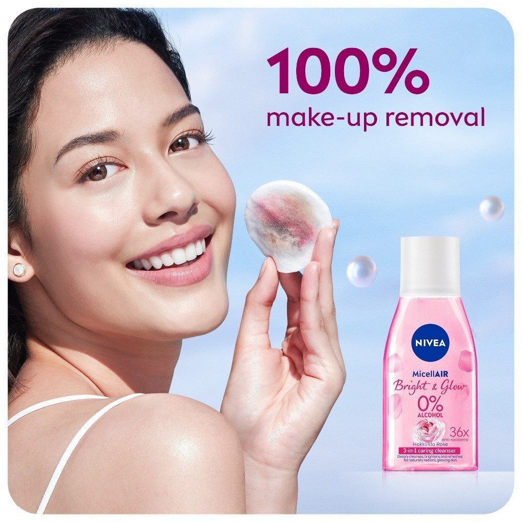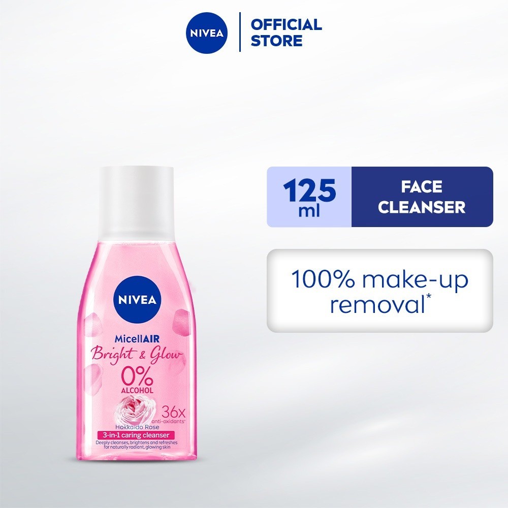 NIVEA Face Cleanser MicellAIR Bright and Glow Micellar Water, Makeup Remover, Micellar Water, 125ml