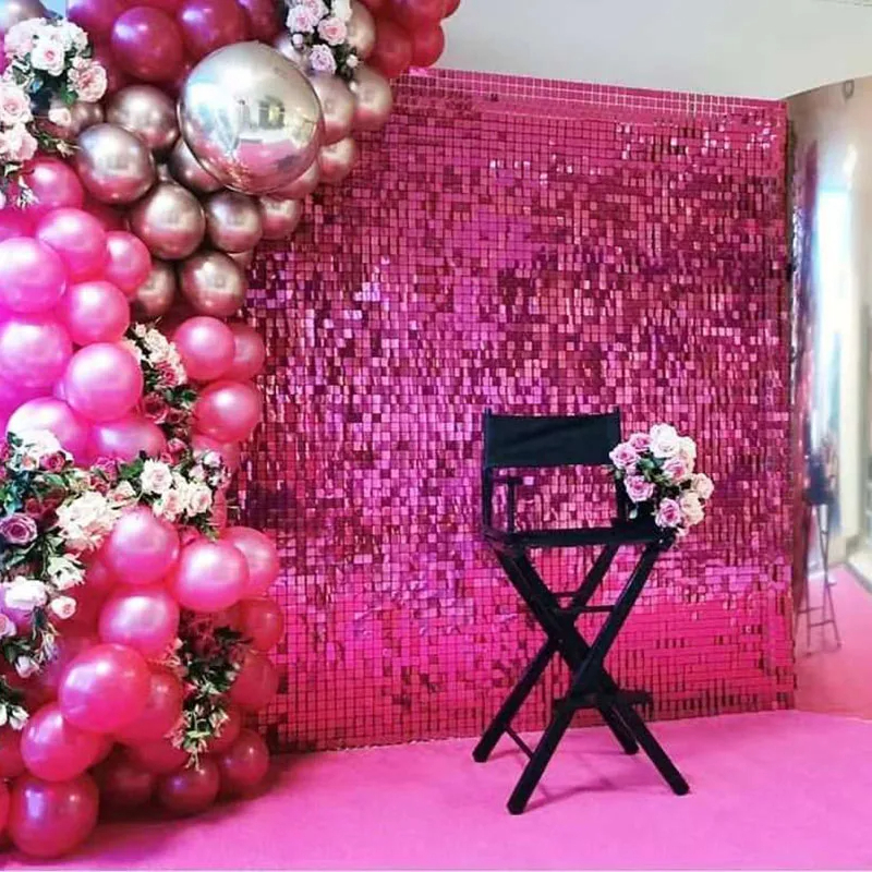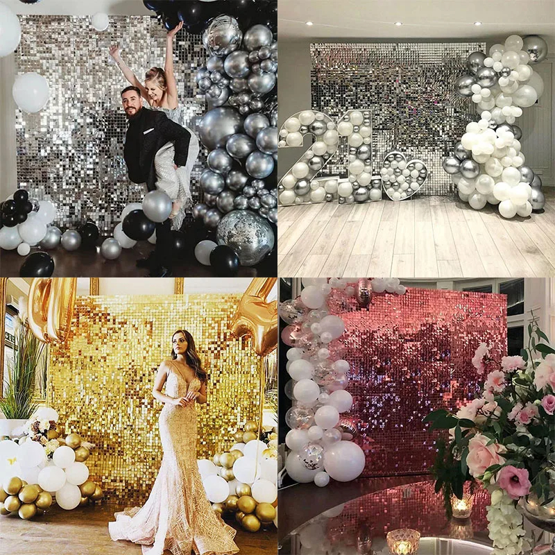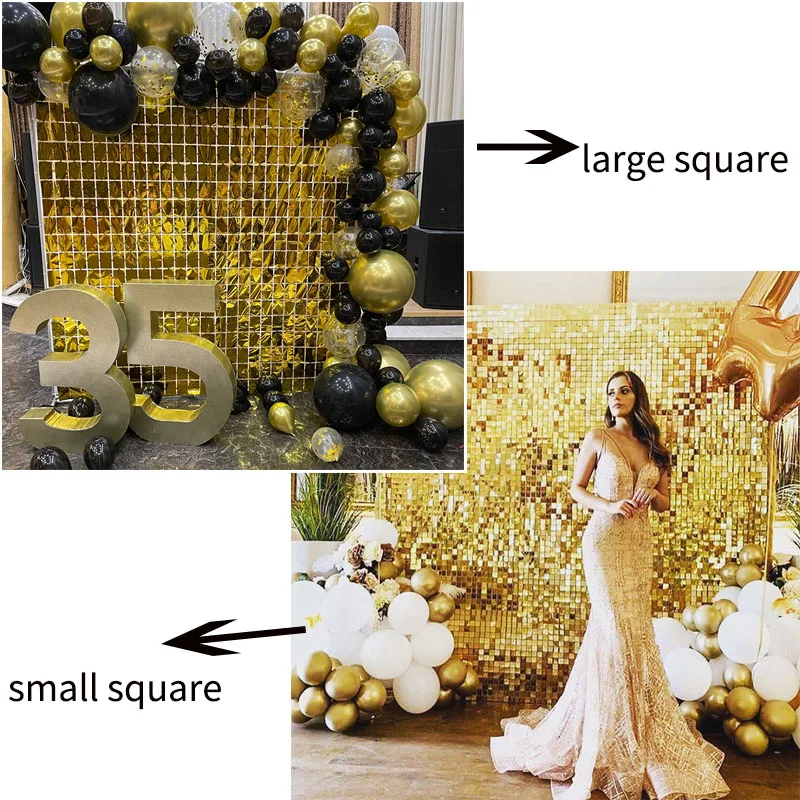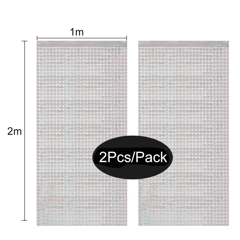 2Pack Square Foil Curtain Background Decoration Sequin Wall Backdrop for Birthday Wedding Party