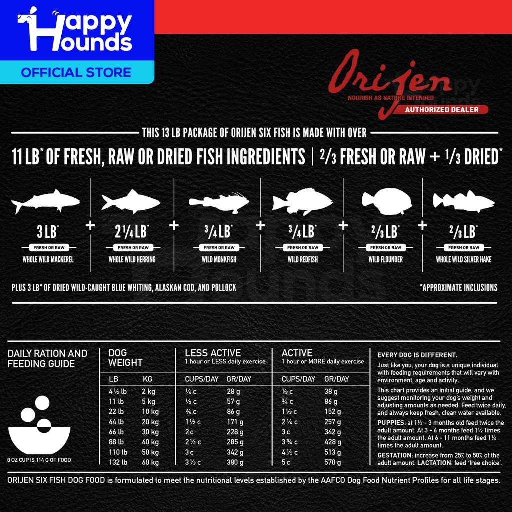 Orijen Six Fish Dog 11.4kg (New Packaging)- Happy Hounds