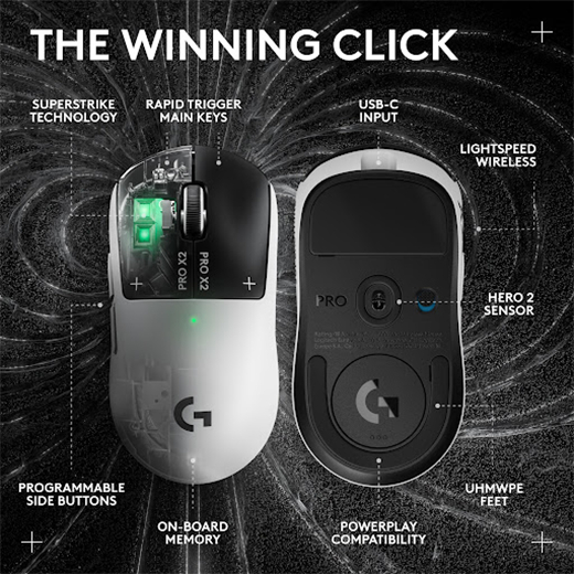 Logitech Pro X2 Superstrike Lightspeed Ultra-Low Click-Latency Wireless Gaming Mouse (910-007778)