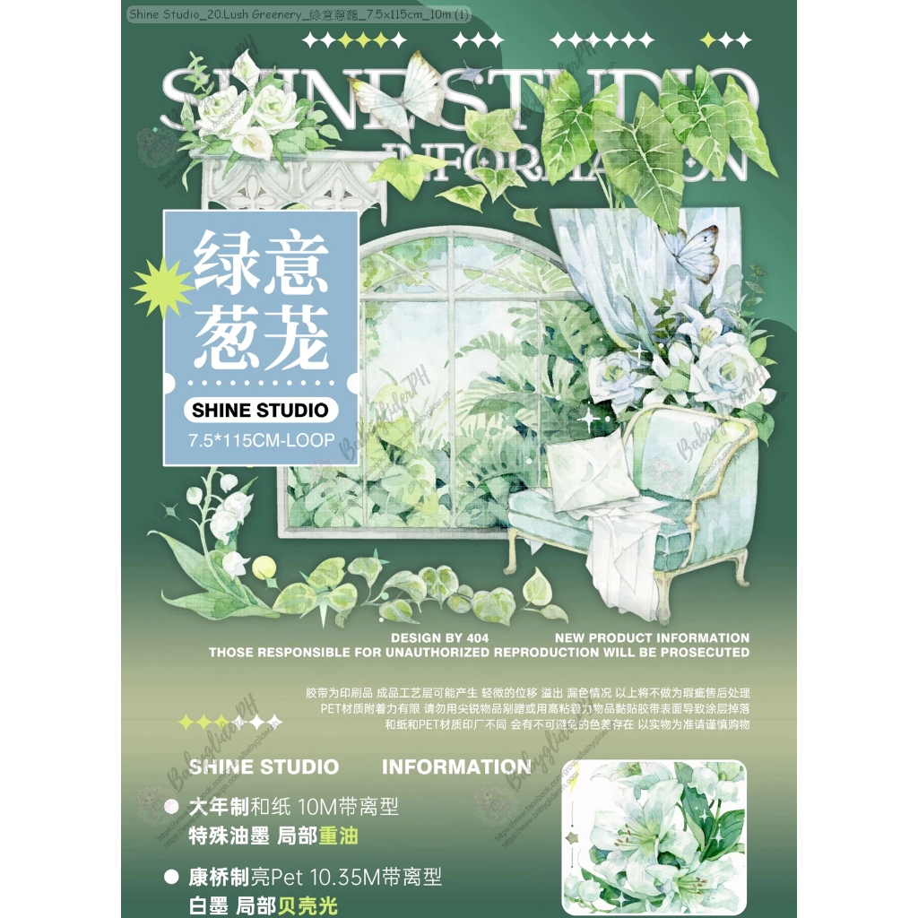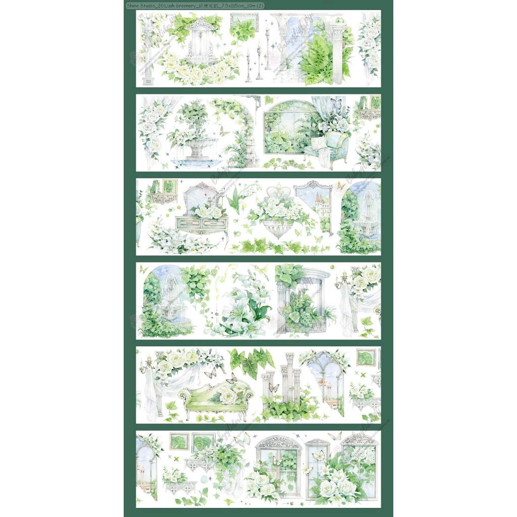 CUT SIZE Washi Tape - Shine Studio : Lush Greenery - White Rose Fountain PET