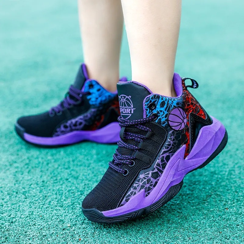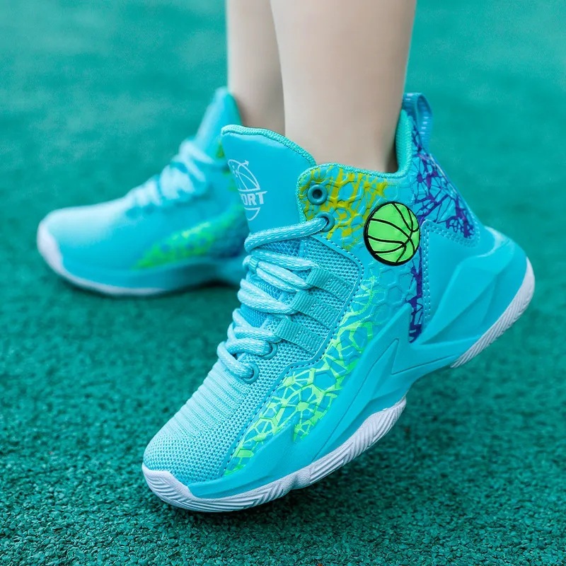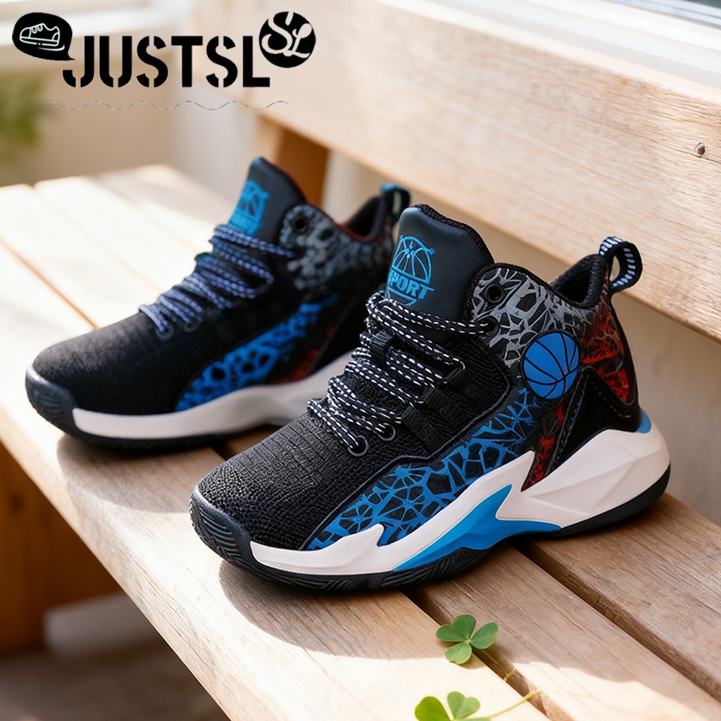 JUSTSL Children's Specific Sports Basketball Shoes Boy's Wear-Resistant Mesh Breathable Shock-absorb