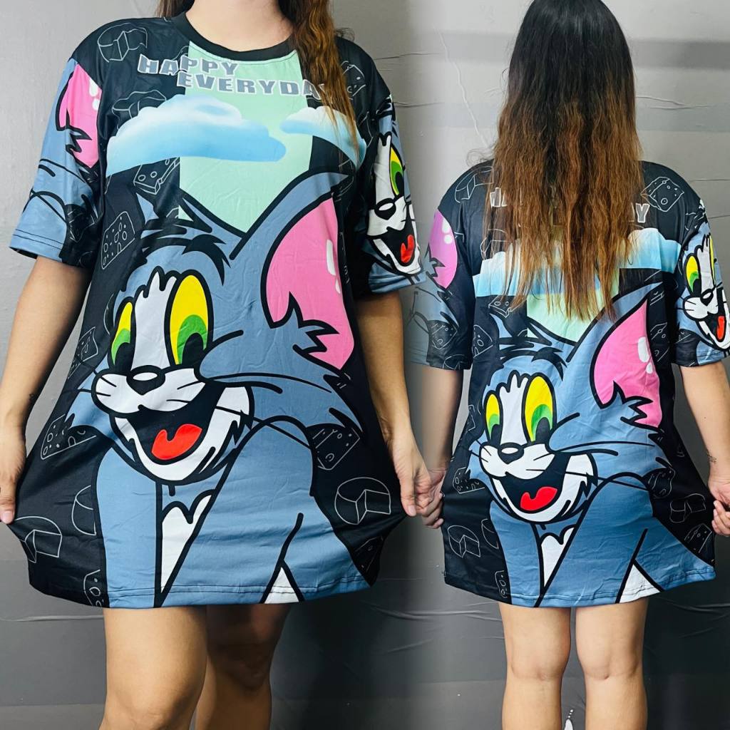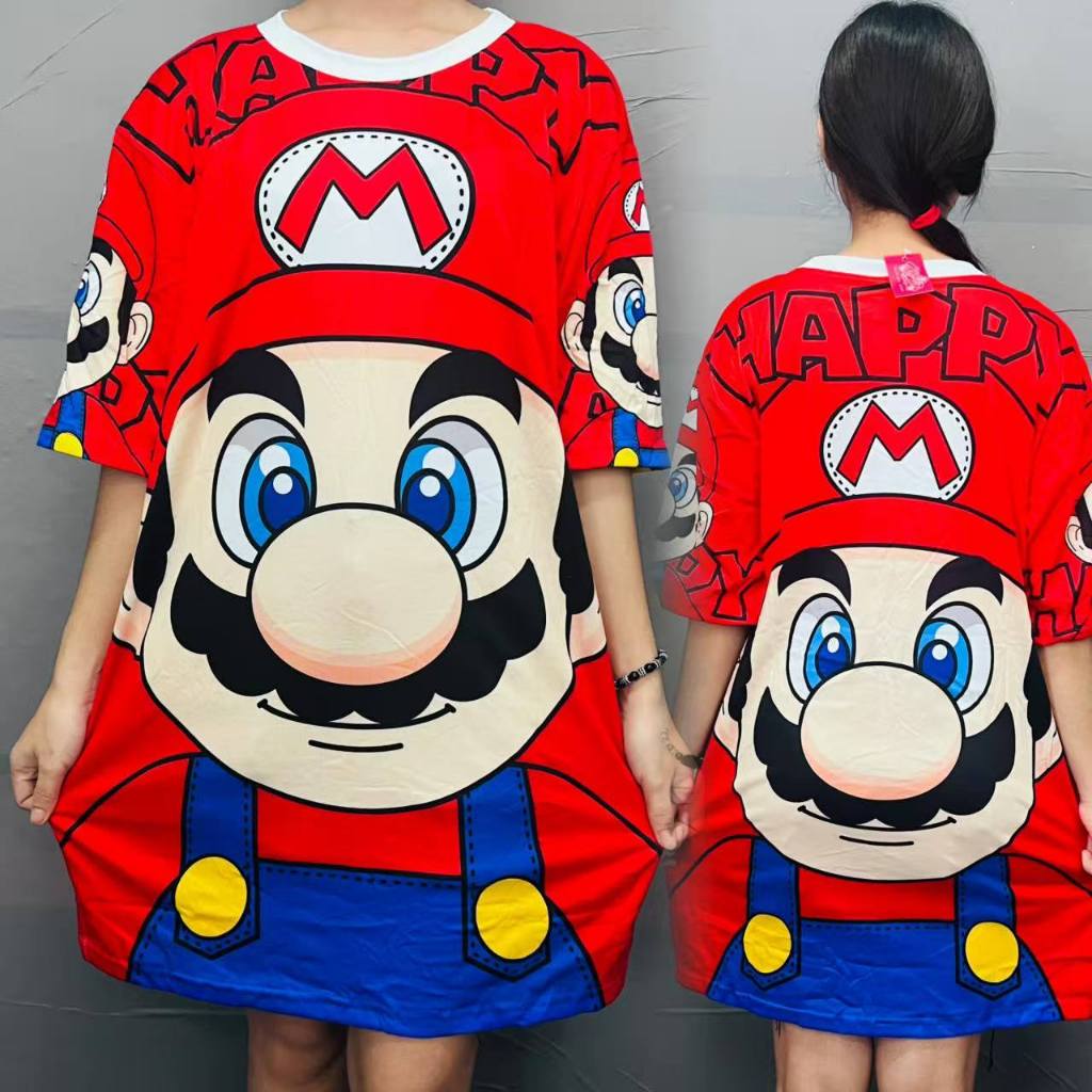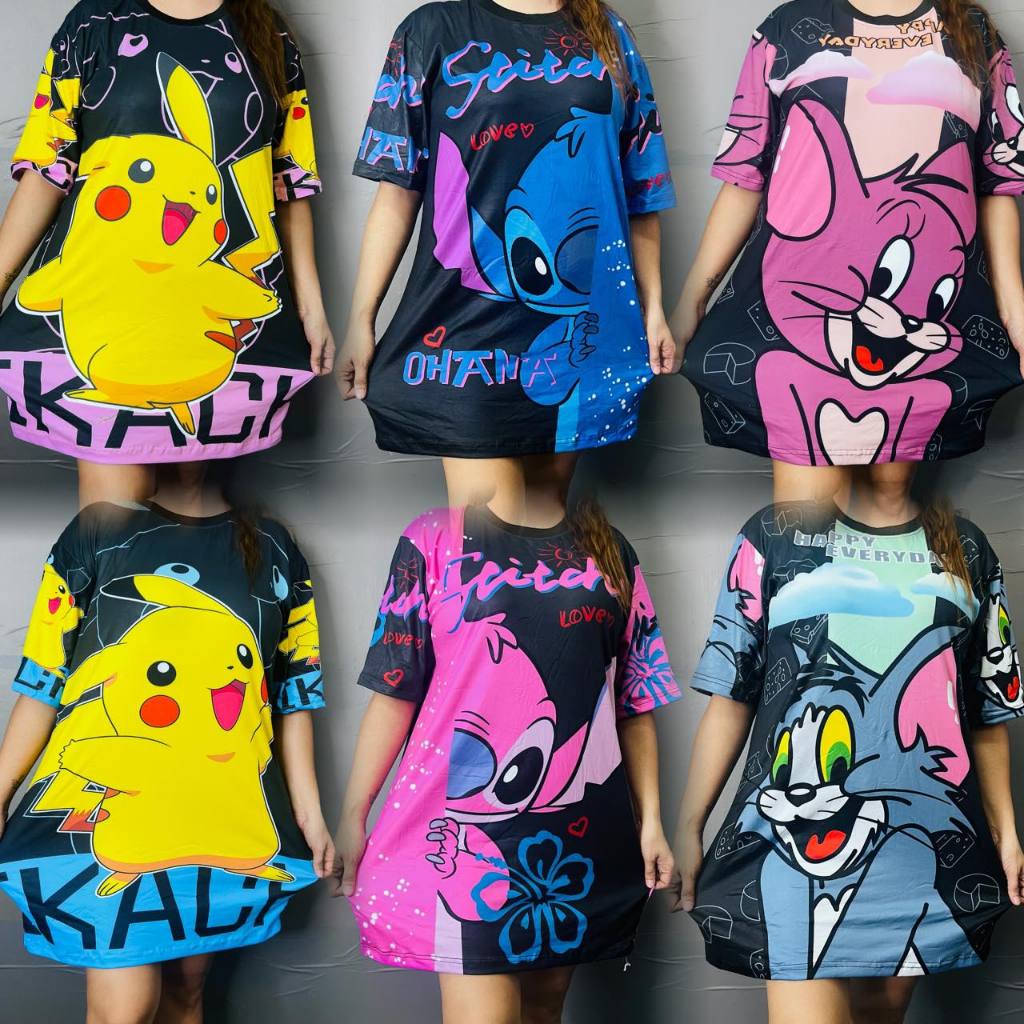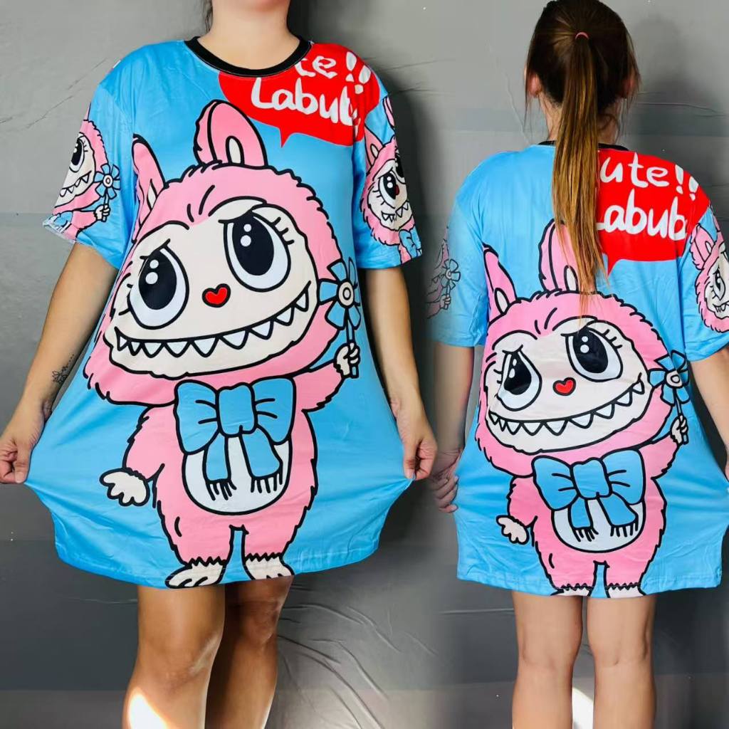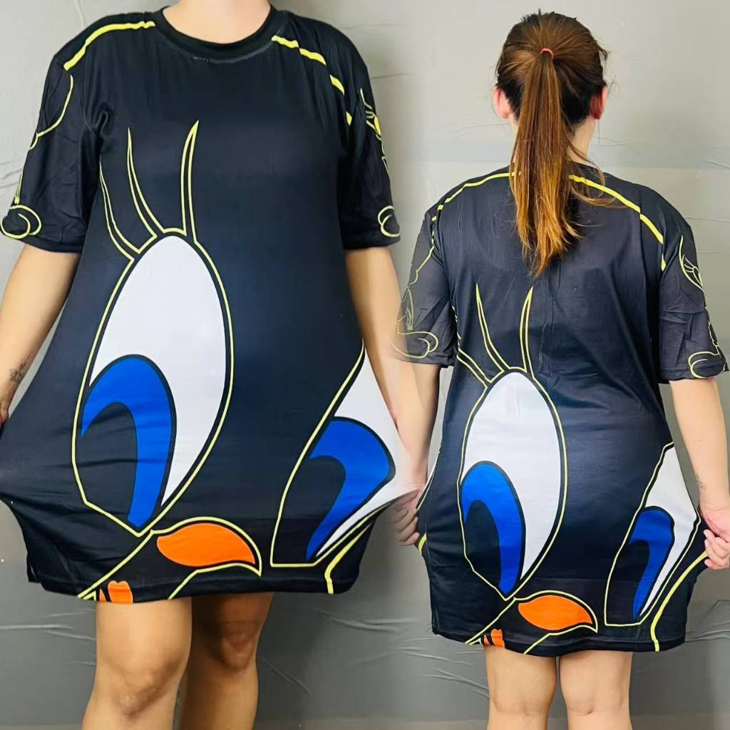 animi cotton spandex dress oversized ctew neck and short sleeves for summer