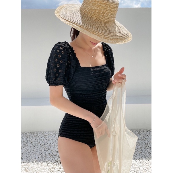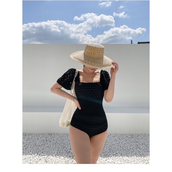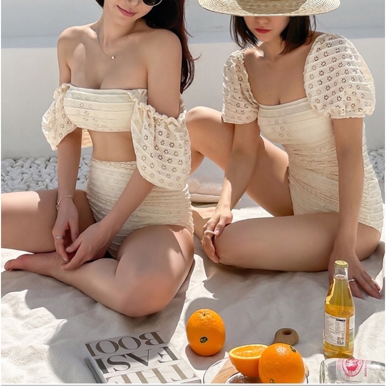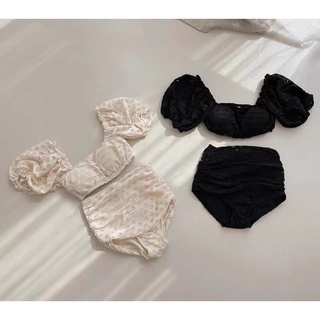 【M&M】#166 2025 New off-Shoulder Design One-Piece Swimsuit Beige Black Two-Piece Bikini Swimwear