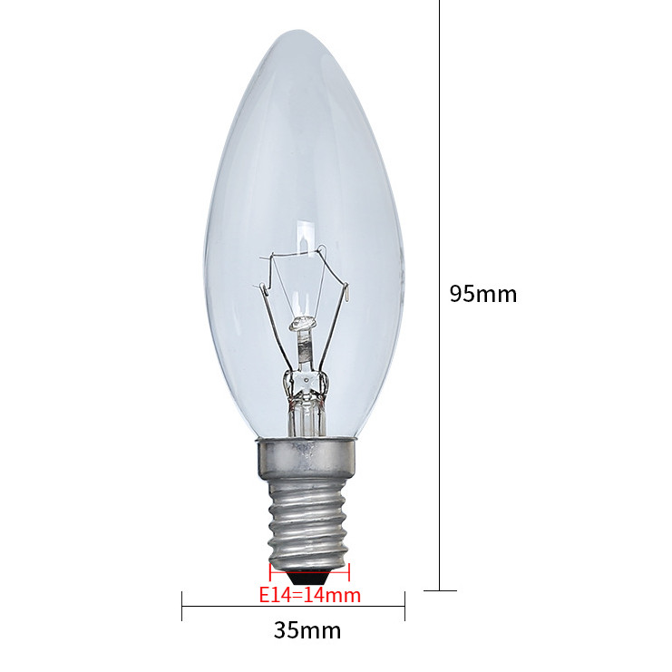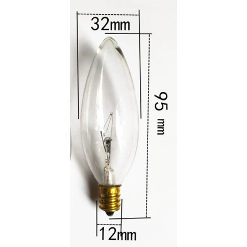 [110V/220V Optional] E12 Screw Ordinary Incandescent Lamp Transparent Candle Type Bulb Chandelier Bulb 15W/25W/40W/60W Dimmable