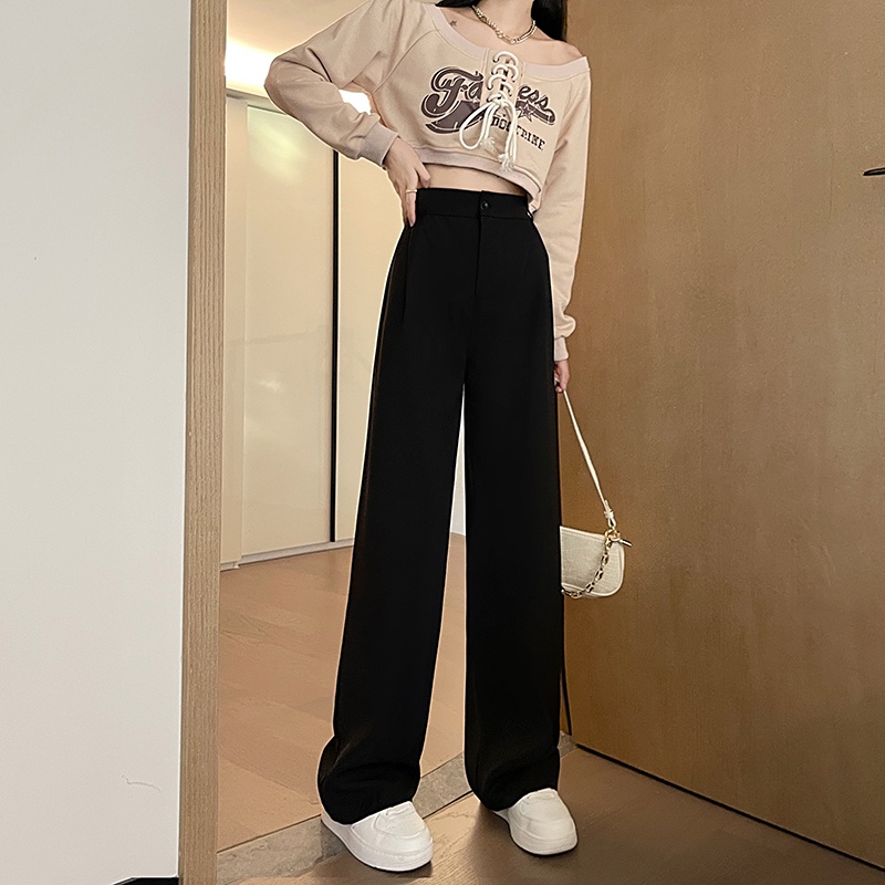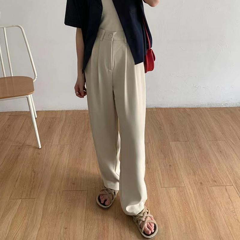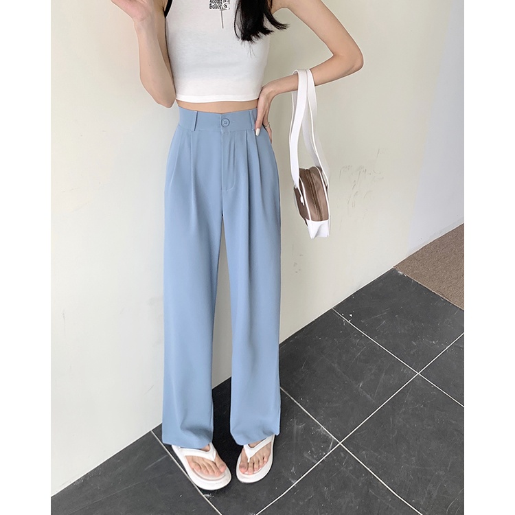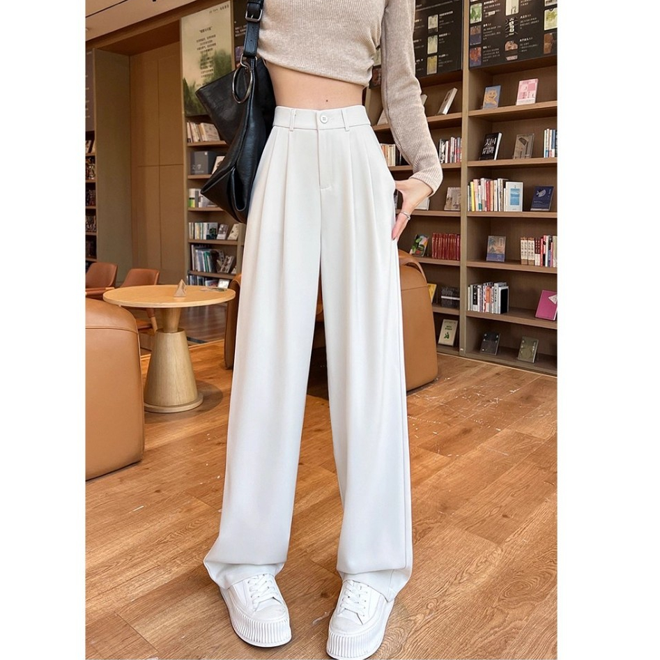 SELLDA S-6XL (23-46) Plus Size Suit Pants For Women Korean High Waist Long Pants Plain Cigarette Trousers