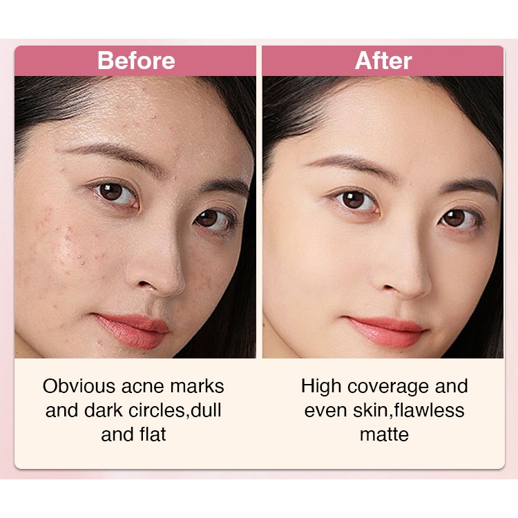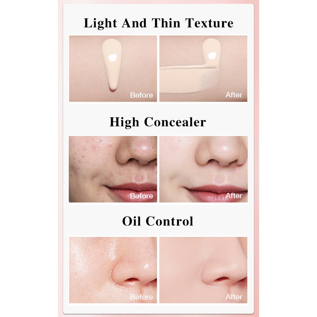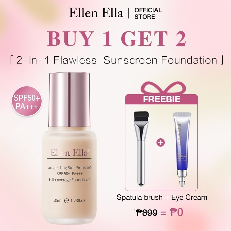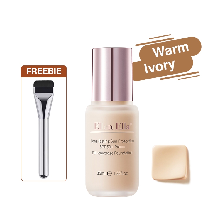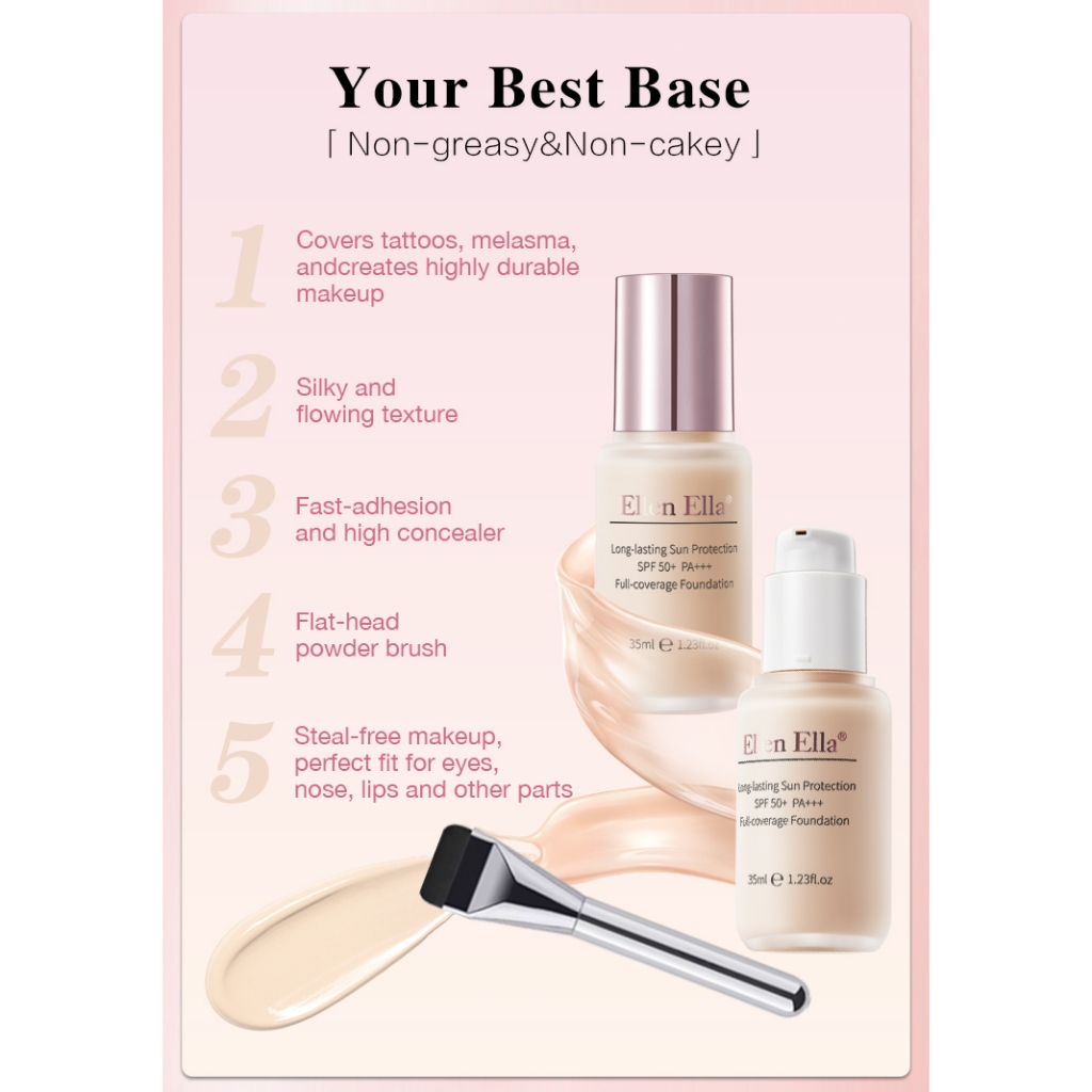 ELLEN E ELLA Foundation SPF with Brush + Eye Cream Set High Coverage Long Lasting Waterproof